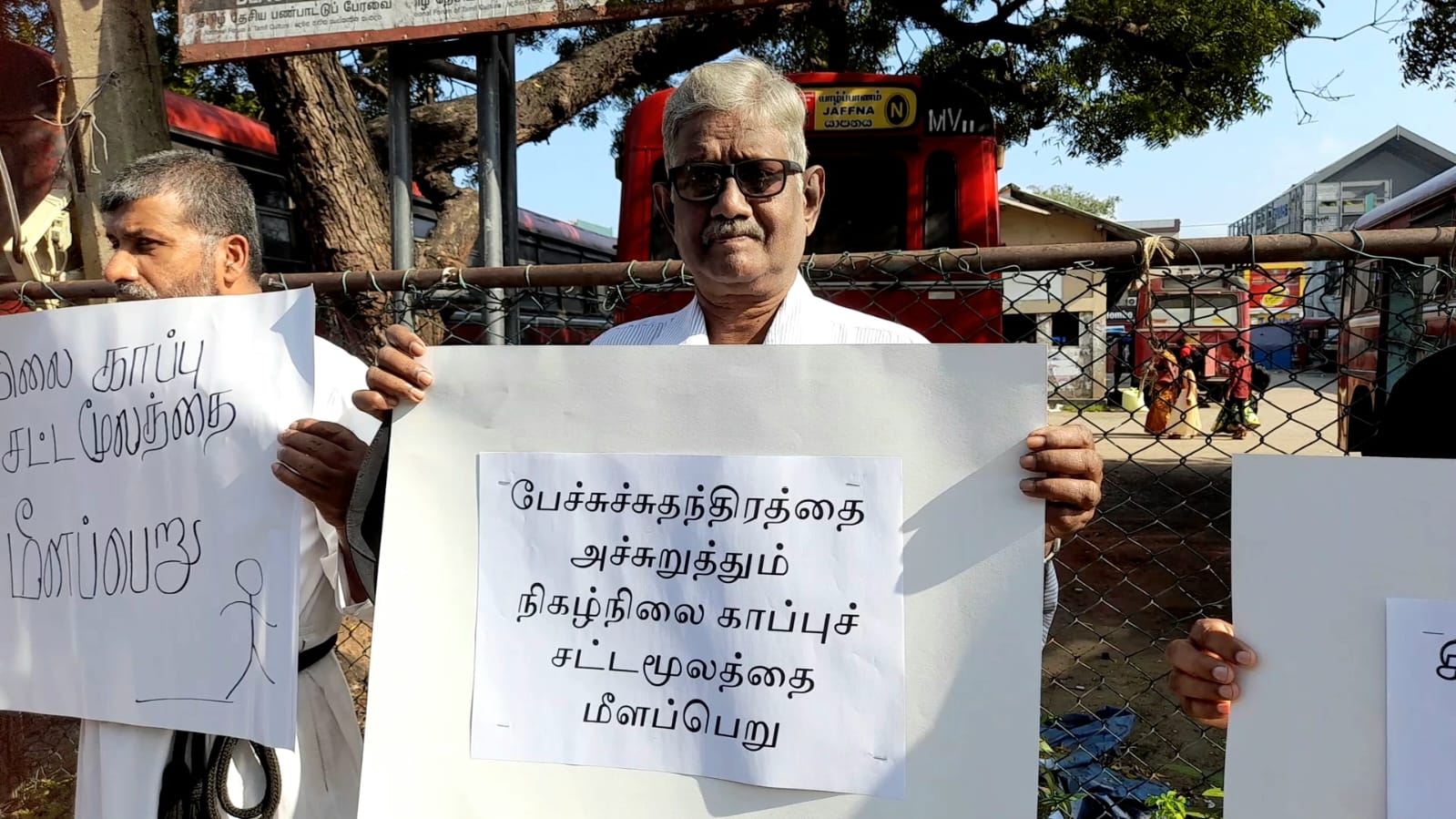 நிகழ்நிலை காப்பு சட்டமூலத்துக்கு எதிராக இன்று புதன்கிழமை (24) யாழ்ப்பாணத்தில் கவனயீர்ப்பு போராட்டம் ஒன்று முன்னெடுக்கப்பட்டது.