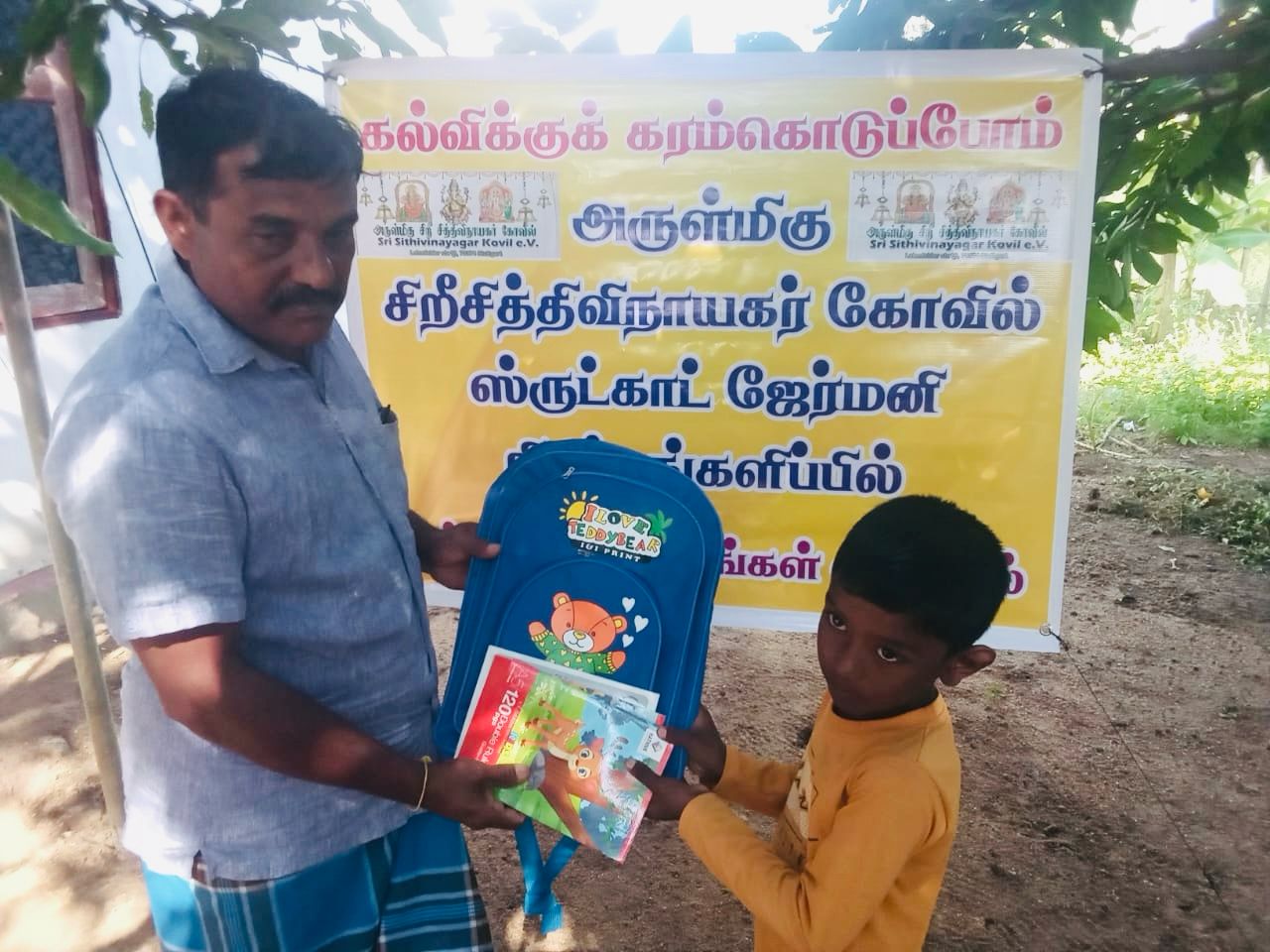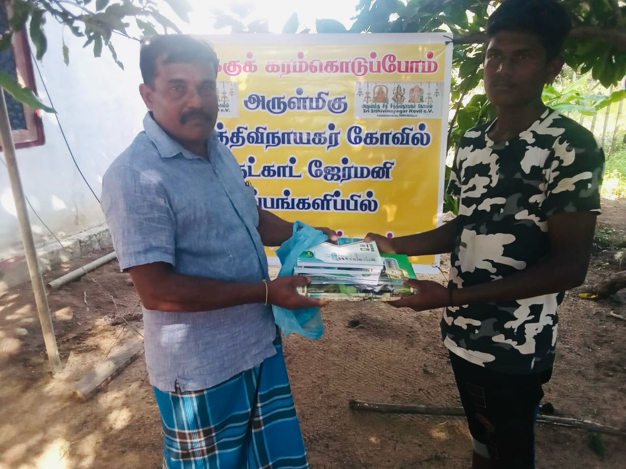கல்விக்குக் கரம்கொடுப்போம் எனும் செயற்திட்டத்தின் ஊடாக மாணவர்களின் கல்வி மேம்பாட்டிற்காக முல்லைத்தீவு முத்துஐயன்கட்டு பிரதேசத்தில் வறுமைக்கோட்டின்கீழ் உள்ள மாணவர்களில் 30 மாணவர்களுக்கு 23.01.2024 அன்று அருள்மிகு சிறீ சித்திவிநாயகர் கோயில் ஸ்ருட்காட் யேர்மனியின் நிதிப்பங்களிப்பில் கற்றல் உபகரணங்கள் வழங்கல்.