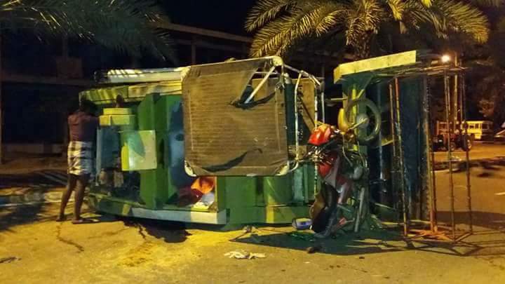 விபத்தில் சாரதியும் உதவியாளரும் தெய்வாதீனமான உயிர் தப்பினர்.