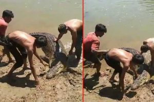 முதலையின் சடலத்தை கண்ட இளைஞர்கள் அதை இழுத்துச் சென்று ஆற்றின் நடுவில் கைவிட்டதாக தெரிவிக்கப்படுகின்றது.