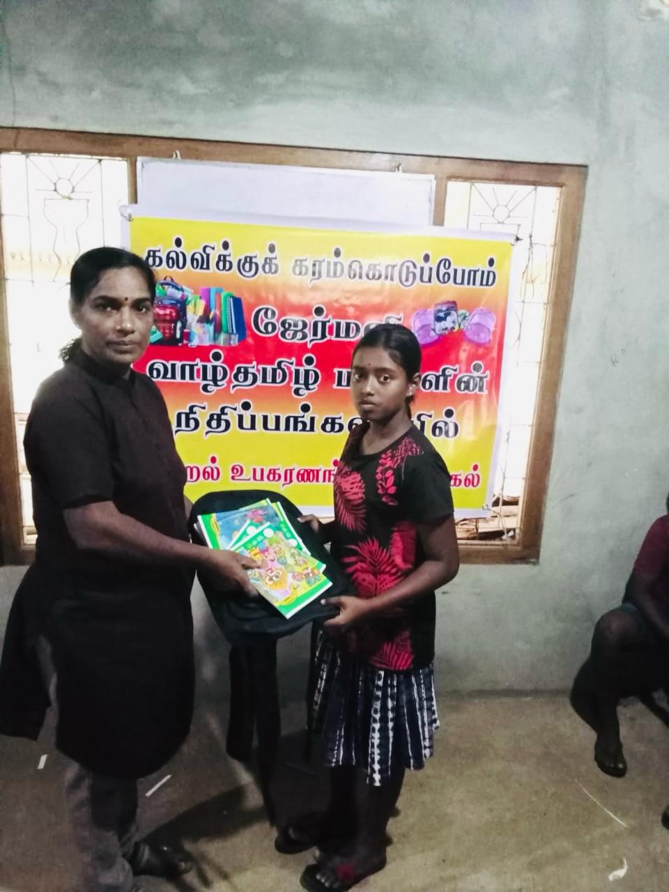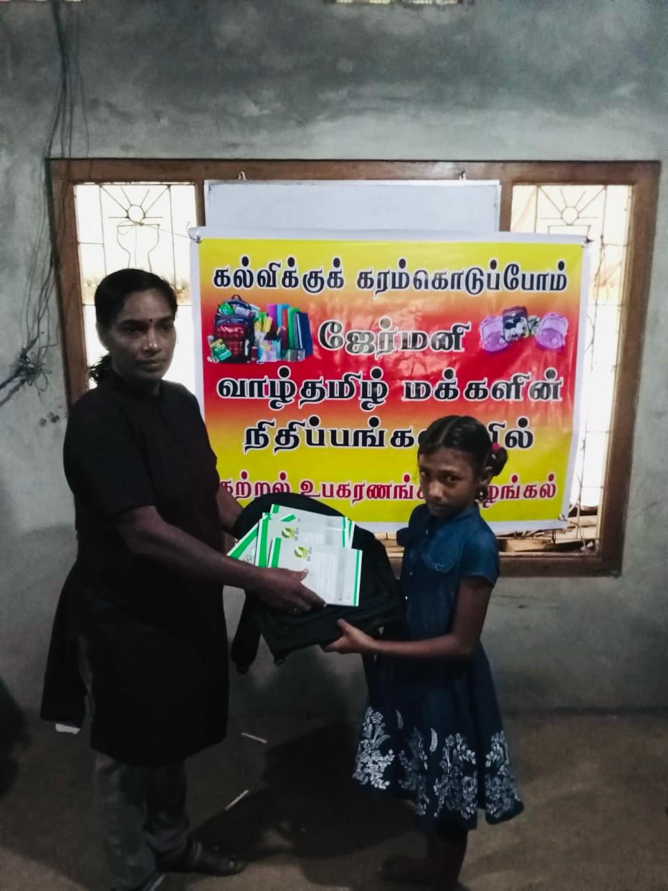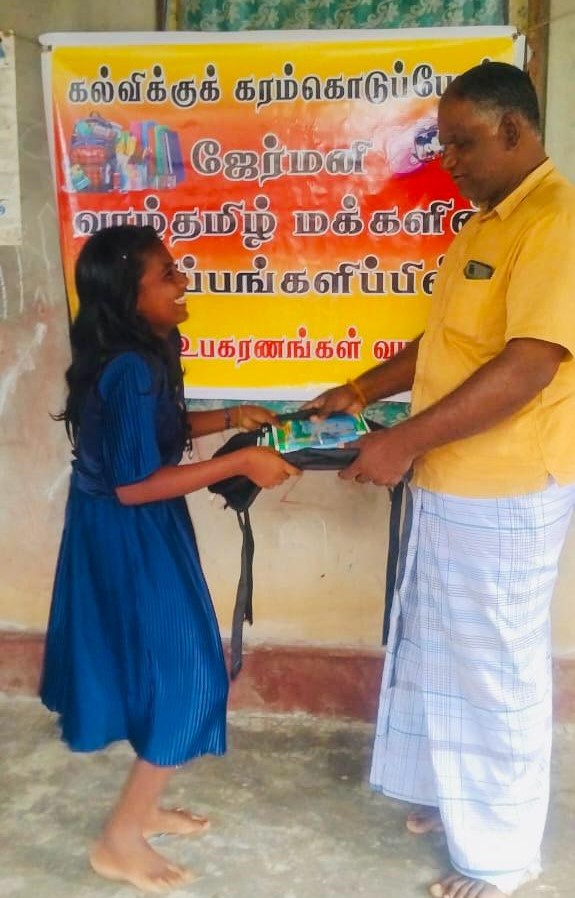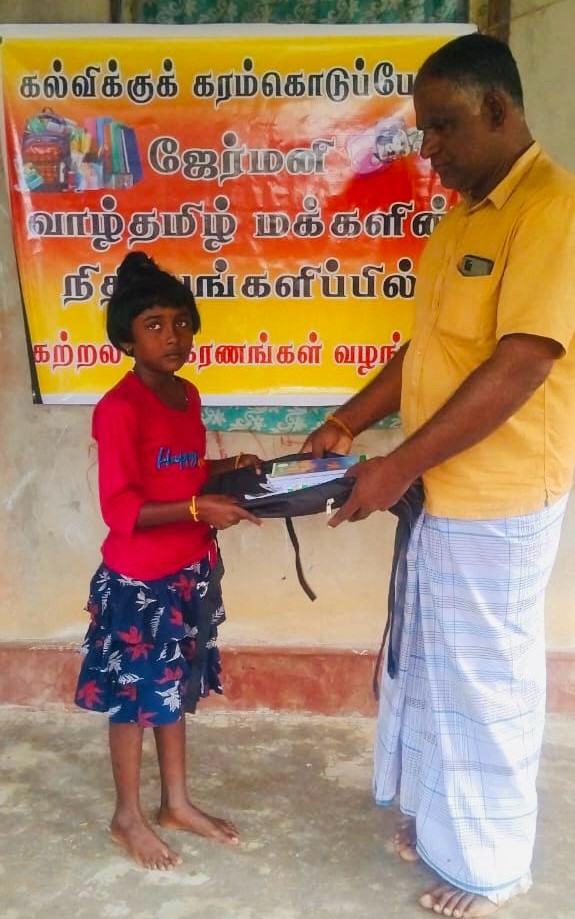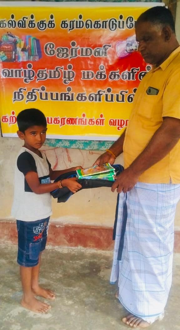 கல்விக்குக் கரம்கொடுப்போம் எனும் செயற்திட்டத்தின் ஊடாக மாணவர்களின் கல்வி மேம்பாட்டிற்காக முல்லைத்தீவு மூங்கிலாறு வடக்கு, மூங்கிலாறு தெற்கு, விமல் வீட்டுத்திட்ட கிராமங்களில் வறுமைக்கோட்டின்கீழ் உள்ள மாணவர்களில் 70 மாணவர்களுக்கு 28.01.2024 இன்று யேர்மனி வாழ் தமிழ்மக்களின்