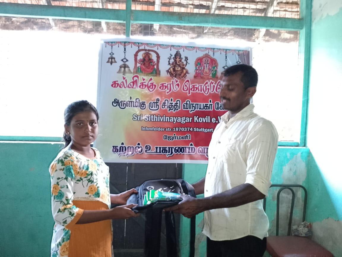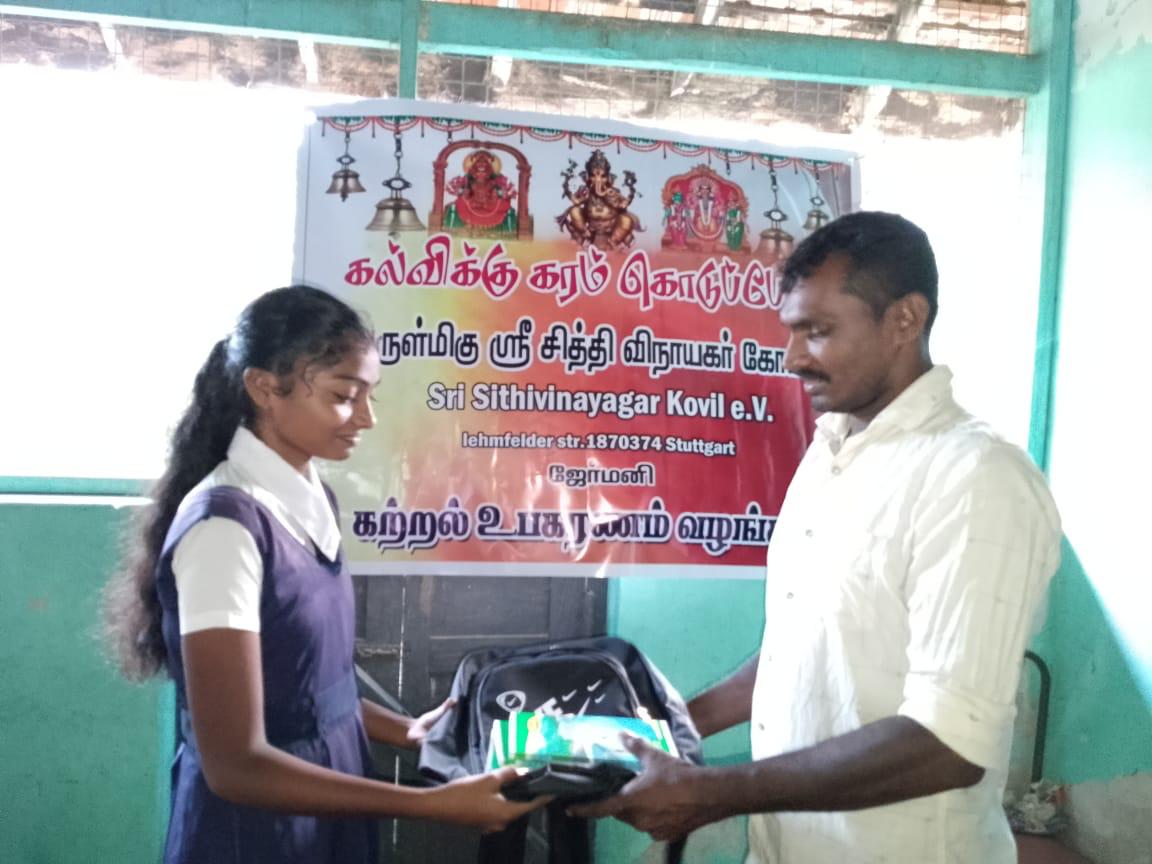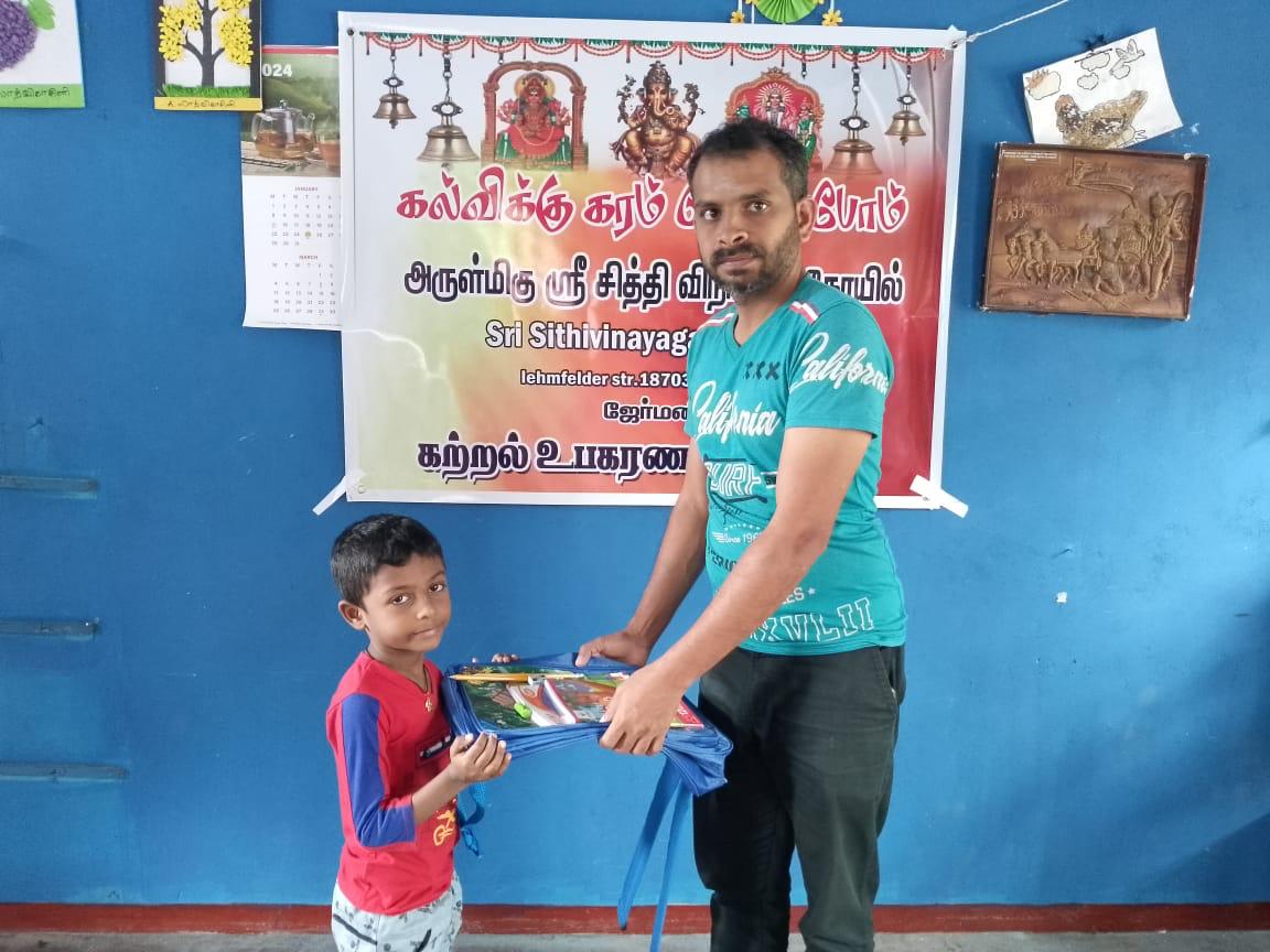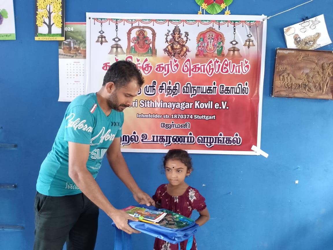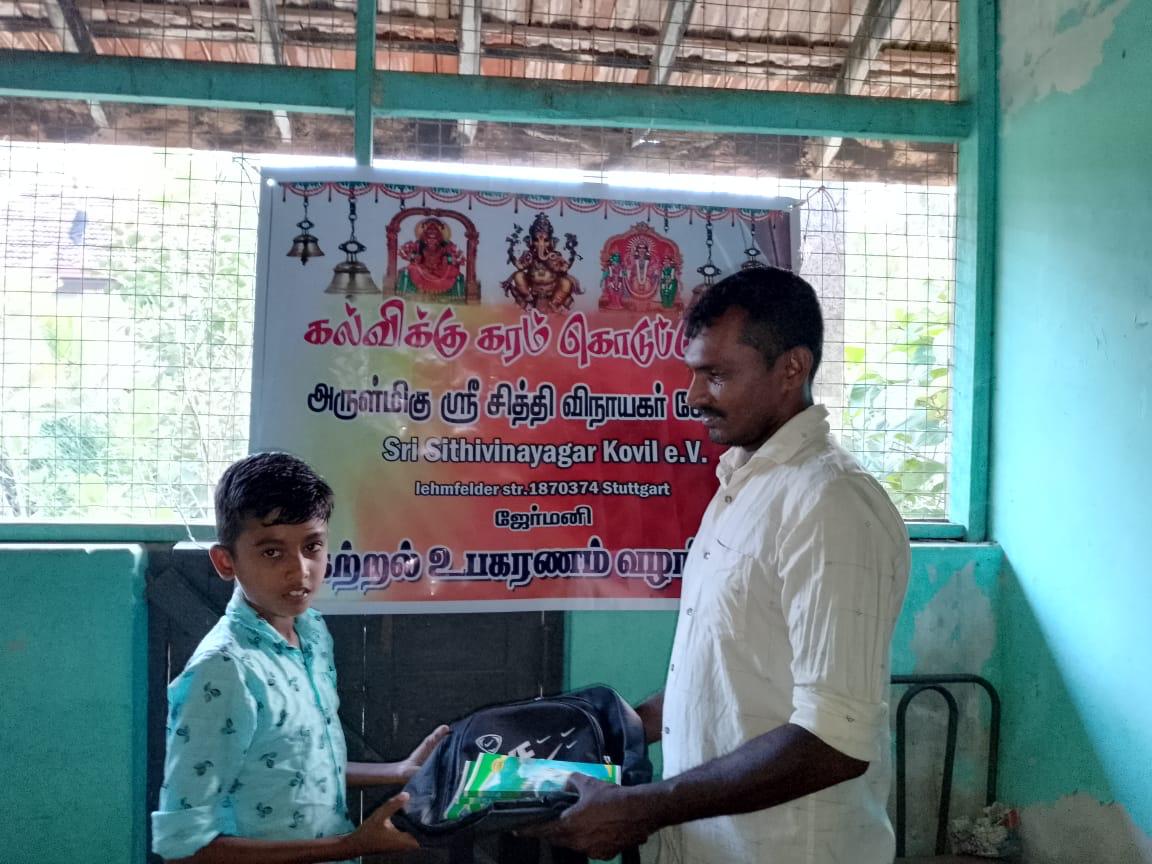 கல்விக்கு கரம்கொடுப்போம் செயற்திட்டத்தின்கீழ் அம்பாரை மாவட்டத்தில் 50 மாணவருக்கான கற்றல் உபகரணம் யேர்மனியில் அமைந்து இருக்கும் அருள்மிகு ஸ்ரீ சித்திவிநாயகர் கோயில் நிறுவகத்தின் நிதிப் பங்களிப்பில் கற்றல் உபகரணம் மற்றும் பொத்தக பை என்பன 30.01.2024 இன்று அக்கறைபற்று ஆலயடிவேம்பு பிரதேசத்தில் வழங்கி வைக்கப்பட்டது இதில் அக்கறைபற்று 89 மற்றும் பனங்காடு, கோலாவில் கண்ணகிபுரம் என பல பகுதிகளில் வசிக்கும் மிகவும் வறுமையான மற்றும் தாய் தந்தையரை இழந்த மாணவர்கள் பயன்பெற்றனர்.