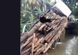 இன்று திங்கட்கிழமை (05) காலை மரக்கட்டைகளை ஏற்றிய லொறி ஒன்று பாலத்தை கடக்கும் போதே குறித்த பாலம் இவ்வாறு இடிந்து விழுந்துள்ளது.