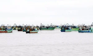அதன்படி மீனவர்கள் இன்று கடலுக்கு செல்லவில்லை. இதன் காரணமாக 500-க்கும் மேற்பட்ட விசைப்படகுகள் துறைமுகத்தில் நிறுத்தப்பட்டுள்ளது.இதனால் மீன்பிடி தொழிலை நம்பியுள்ள ஏராளமானோர் இன்று வேலையிழந்துள்ளனர்.