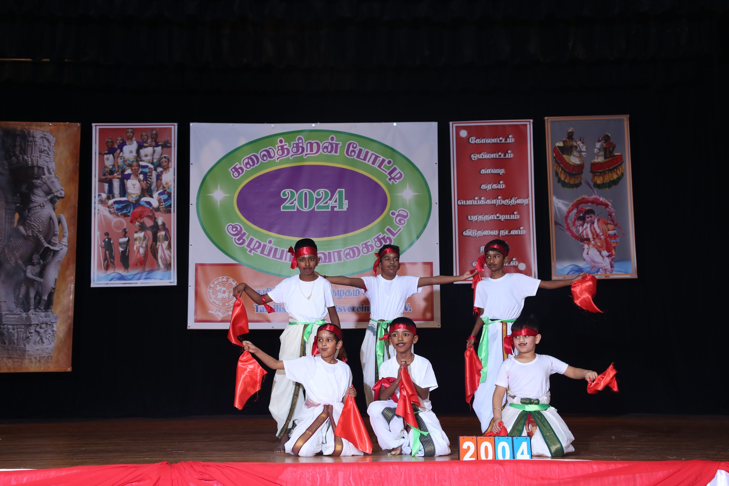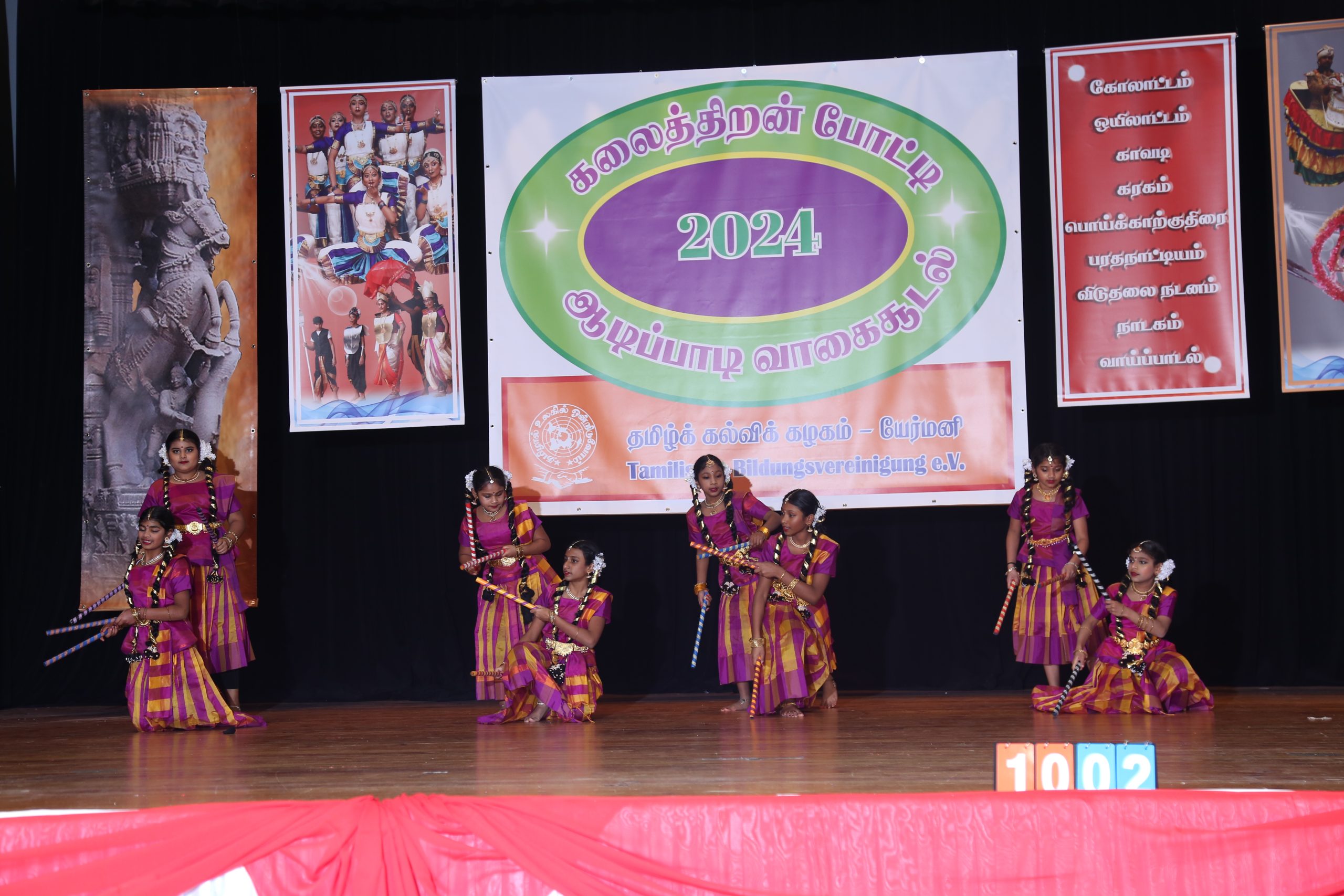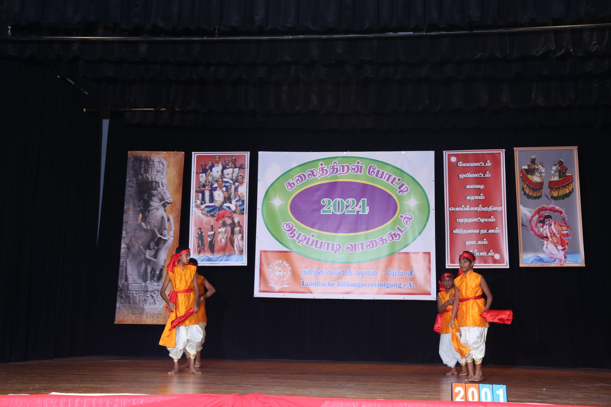 திட்டமிட்டவாறு கோலாட்டம், ஒயிலாட்டம், காவடி, கரகம், பொய்க்காற் குதிரை, பரதநாட்டியம், விடுதலை நடனம் மற்றும் விடுதலைப்பாடல் உள்ளடங்கியதான வாய்ப்பாடற் போட்டிகள் மேலரங்கிலும் கீழரங்கிலுமாக விறுவிறுப்போடு நடைபெற்று, 19:00மணிக்கு நிறைவுற்றதைத் தொடர்ந்து, வெற்றியாளர்களுக்கான மதிப்பளிப்புகள் வழங்கப்பட்டன. தென்மாநிலத் தமிழாலயங்களிடையே நடாத்தப்பட்ட கலைத்திறன் போட்டியில் பங்கேற்றுப் பெற்ற வெற்றிகளின் அடிப்படையில் 1ஆம் நிலையை முன்சன் தமிழாலயமும் 2ஆம் நிலையை ருற்லிங்கன் தமிழாலயமும் 3ஆம் நிலையை நூர்ன்பேர்க் தமிழாலயமும் பெற்றுக்கொண்டன. மாநில மட்டத்தில் முதல் மூன்று நிலைகளைத் தமதாக்கிய மேற்குறித்த தமிழாலயங்களுக்குத் தமிழ்க் கல்விக் கழகத்தின் 34ஆவது அகவை நிறைவு விழாவில் சிறப்பு மதிப்பளிப்பு வழங்கப்படும்.