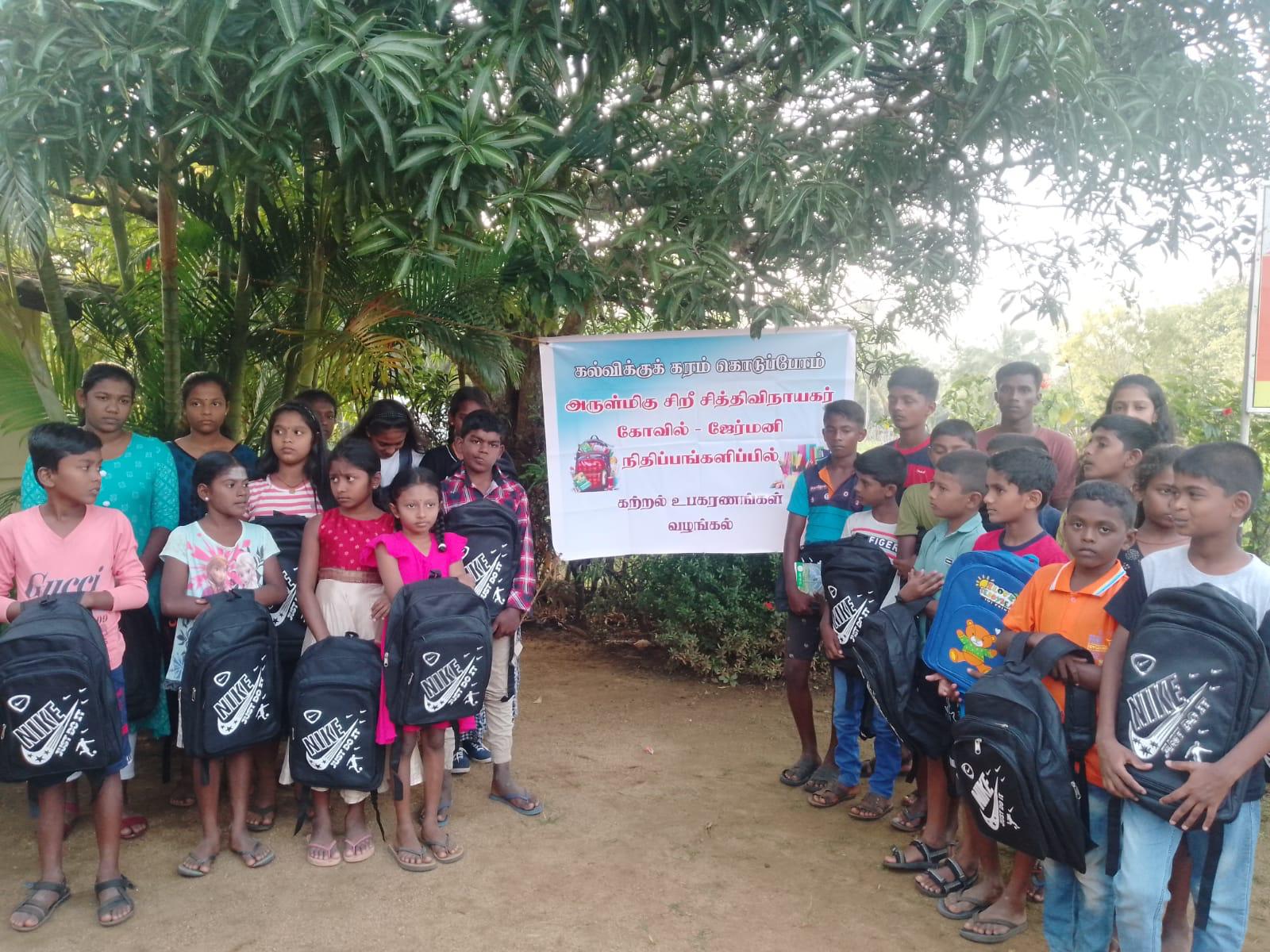 கல்விக்கு கரம் கொடுப்போம் தொனிப்பெருளில் யேர்மனி சிறி சித்திவினாயகர் கோயிலின் நிதிப் பங்களிப்பில் வவுனியா மாவட்டம் சிதம்பரபுரம் ஆசிகுளம் கிராம மாணவரகளுக்கான 30 கற்றல் உபகரணம் மற்றும் பொத்தகப்பை என்பன சிதம்பரபுரம் கிராமத்தில் வைத்து இன்று 09.02.2024 பி.ப.4.00 மணிக்கு வழங்கிவைக்கப்பட்டது.