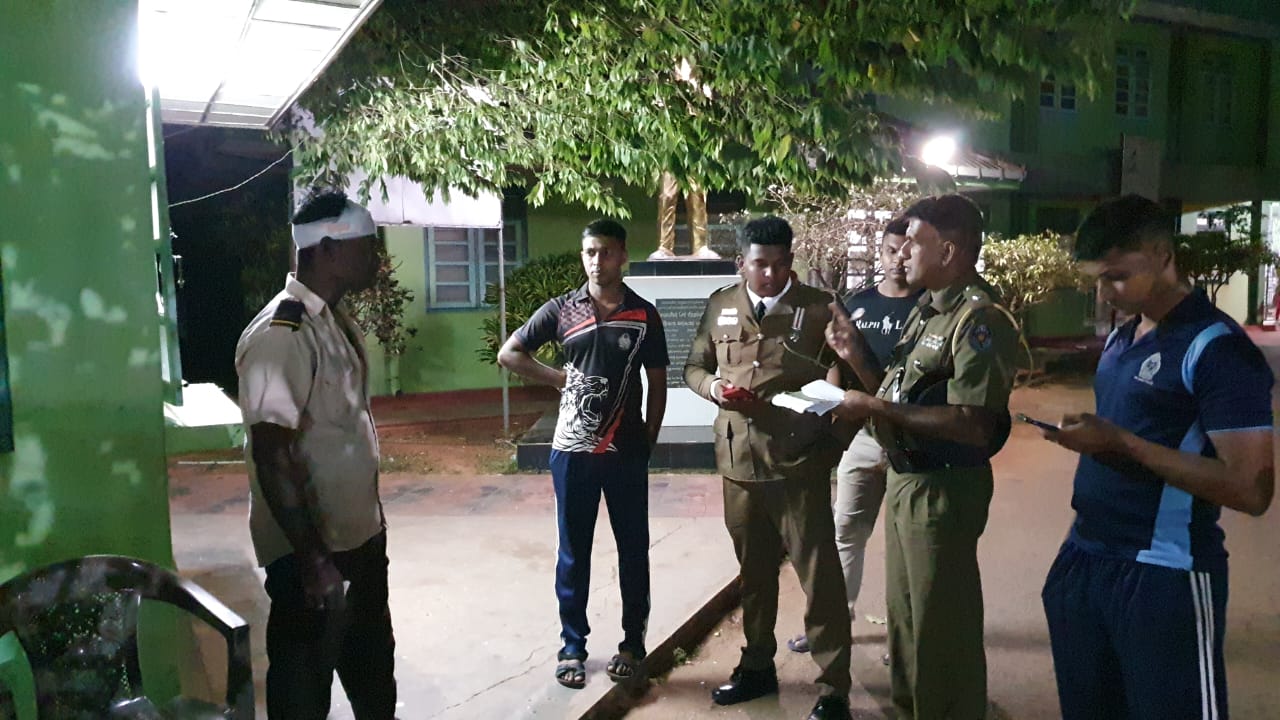 பாதுகாப்பு உத்தியோகத்தரின் அலுவலக ஜன்னல் கண்ணாடிகளை உடைத்து சேதப்படுத்தியுள்ளனர். இதனை தடுக்க வந்தவர்களையும் தகாத வார்த்தைகளால் கடுமையாக மிரட்டினர்.