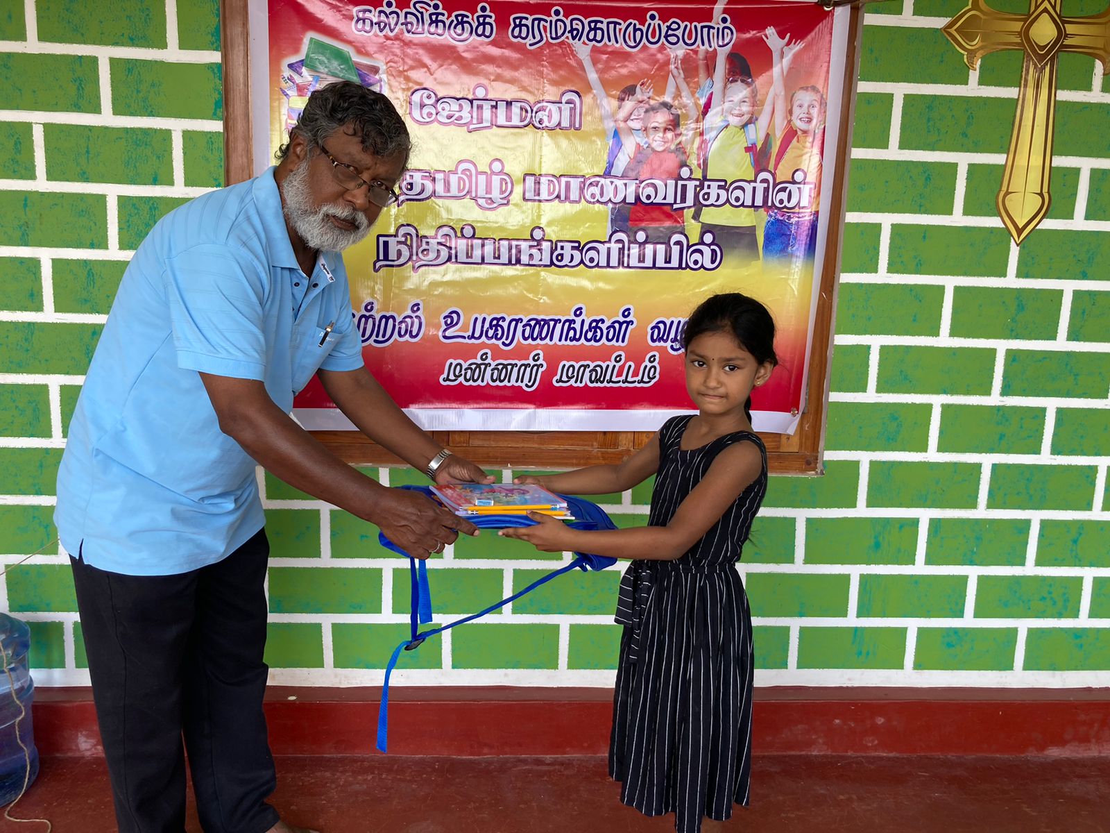 கல்விக்கு கரம்கொடுப்போம் செயற்திட்டத்தின்கீழ் மன்னார் மாவட்டத்தில் ஜிம்ரோ நகர் கிராமத்தில் வறுமை கோட்டின் கீழ் வசிக்கும் 15 மாணவர்களுக்கு யேர்மனி வாழ் தமிழ் மாணவர்களின் நிதிப்பங்களிப்பில் கற்றல் உபகரணம் மற்றும் பொத்தகப்பை என்பன 16- 02-2024 இன்று வழங்கி வைக்கப்பட்டது. ஜிம்ரோ நகர் பகுதியில் வசிக்கும் 15 மாணவர்கள் பயன்பெற்றனர்.