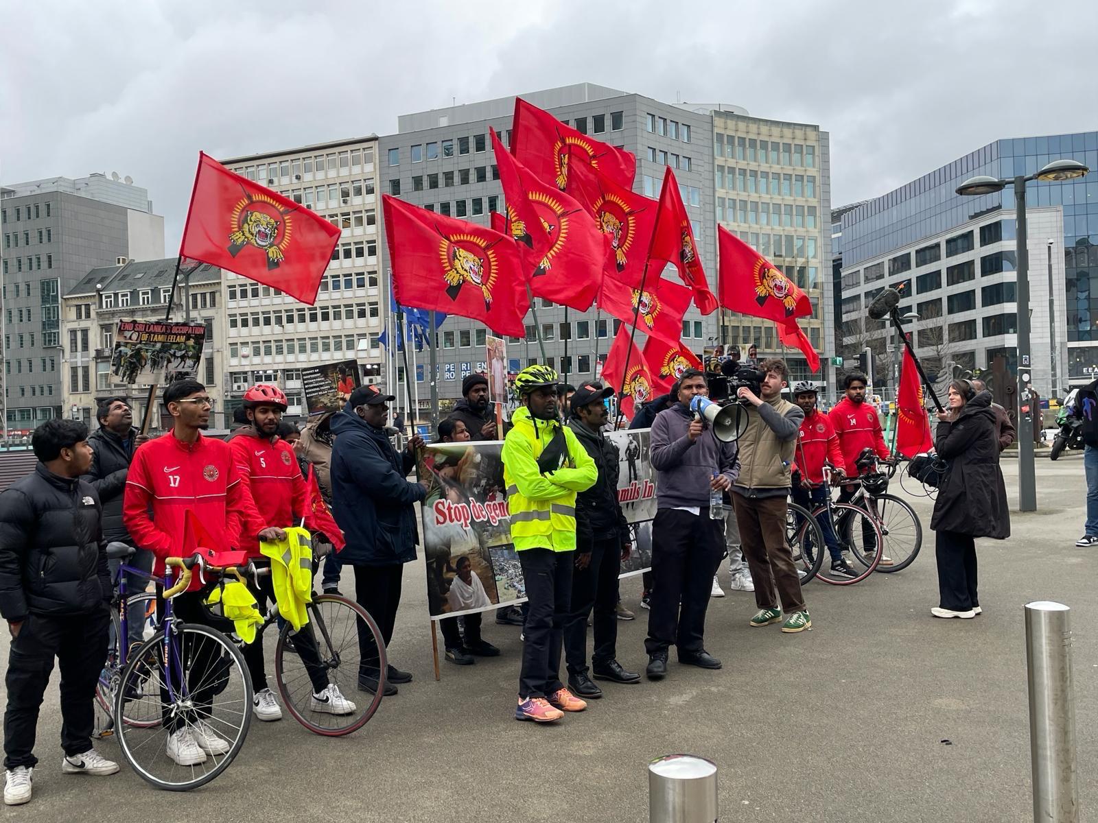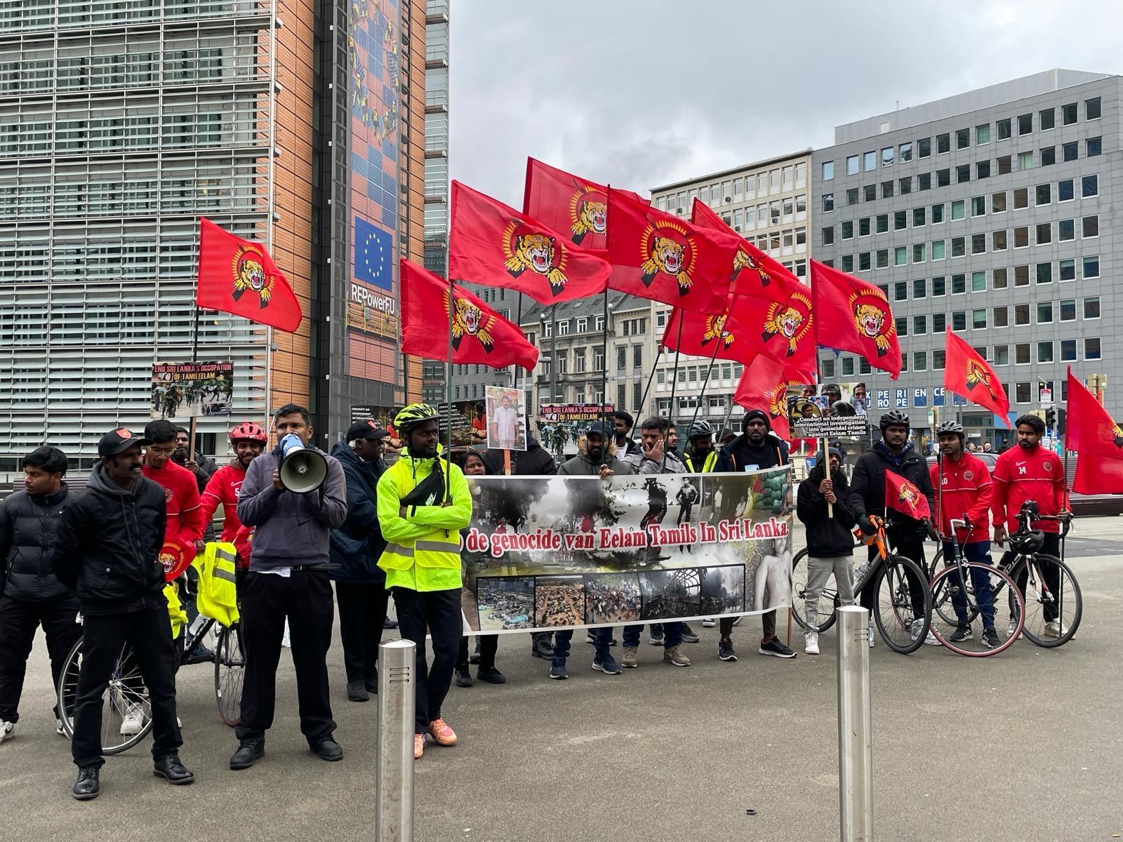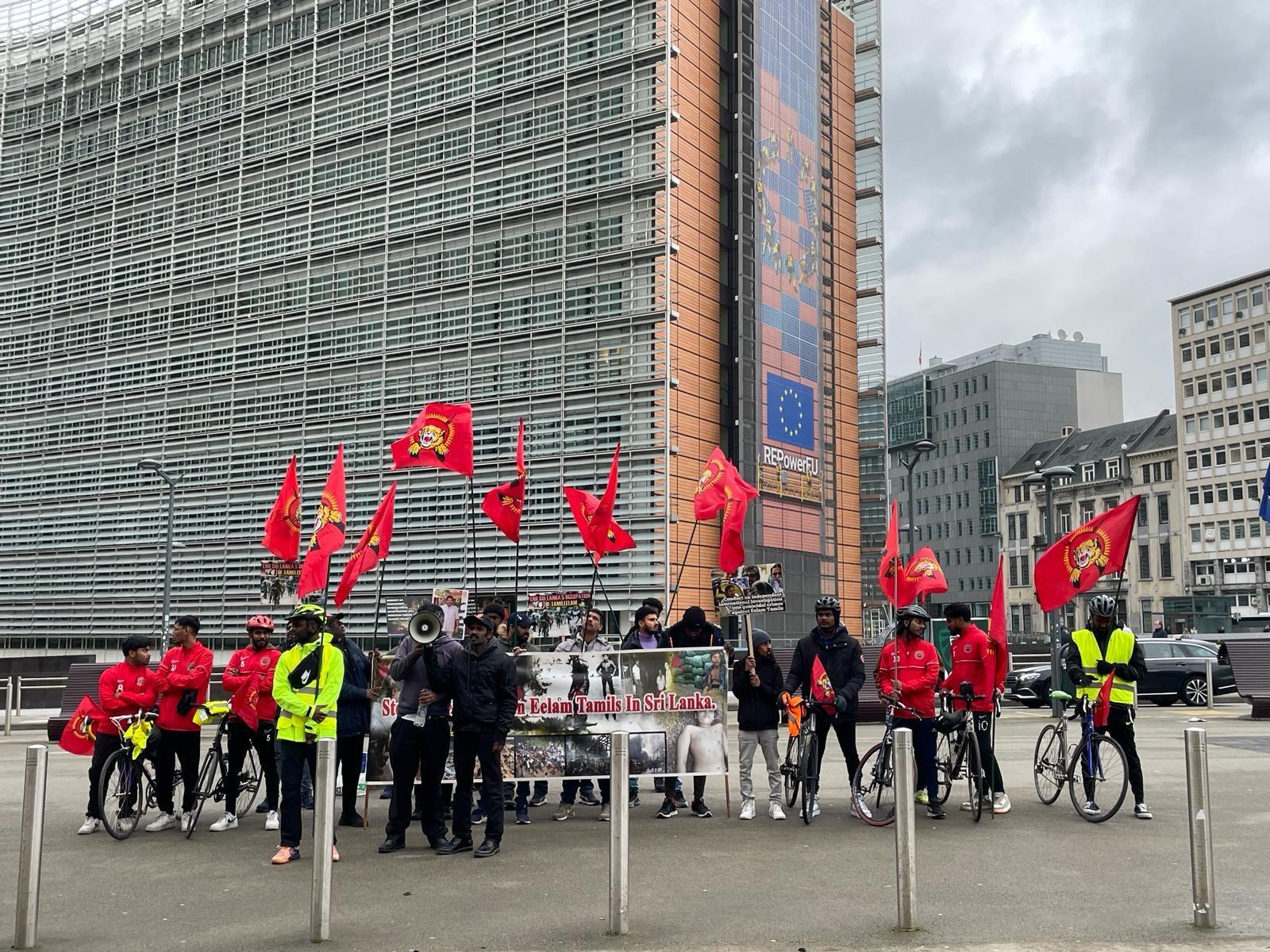 தமிழின அழிப்பிற்கு நீதிகேட்டு, பிரித்தானியாவிலிருந்து ஜெனிவா நோக்கி பயணிக்கும் ஈருருளிப்பயணம் நேற்றைய நாள் (19.02.2024) பெல்சியம் தலைநகர் புரூசலில் அமைந்துள்ள ஐரோப்பிய ஒன்றியம் முன்பாக ,பெல்சியம் வாழ்தமிழ்மக்களுடன் இணைந்து கண்டனப் போராட்டம் ஒன்றை நடாத்தியுள்ளனர்.