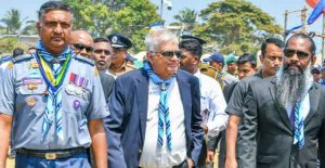 10 ஆவது தேசிய சாரணர் ஜம்போரிக்கு வருகைத் தந்த ஜனாதிபதி ரணில் விக்ரமசிங்கவுக்கு பிரதம சாரணர் பணிப்பாளர் நாயகம் சட்டத்தரணி ஜனப்பித் பெர்னாண்டோ ஜம்போரி கழுத்துப் பட்டி மற்றும் பதக்கம் அணிவித்து வரவேற்பளித்தார்.