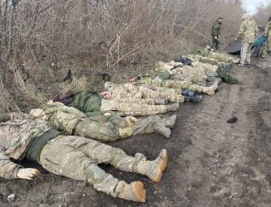குறிப்பிட்ட தளத்தில் உயிரிழந்த நிலையில் பல ரஸ்ய வீரர்கள் காணப்படுவதை காண்பிக்கும் வீடியோக்கள் வெளியாகியுள்ளன,
