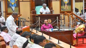 இந்நிலையில் தொடர்ந்து சட்டப்பேரவைத் தலைவர் அறிக்கைகளை வாசித்தார். அதையடுத்து எதிர்க்கட்சியான திமுக, காங்கிரஸ் எம்எல்ஏக்கள் வெளிநடப்பு செய்தனர்.
