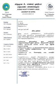 இது தொடர்பில் யாழ்ப்பாண பல்கலைக்கழக விஞ்ஞான பீட மாணவர் ஒன்றியம் வெளியிட்ட அறிக்கையில் இவ்விடயம் தெரிவிக்கப்பட்டுள்ளது.