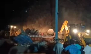 தமிழக-கேரள எல்லைப் பகுதியில் தண்டவாளத்தில் லாரி கவிழ்ந்து விபத்து ஏற்பட்டது. கேரளாவில் இருந்து தூத்துக்குடிக்கு பிளைவுட் ஏற்றி வந்த லாரி எஸ் வளைவு பகுதியில் கவிழ்ந்தது. லாரி கவிழ்ந்த நேரத்தில் சிறப்பு ரெயில் வந்து கொண்டிருந்தது.