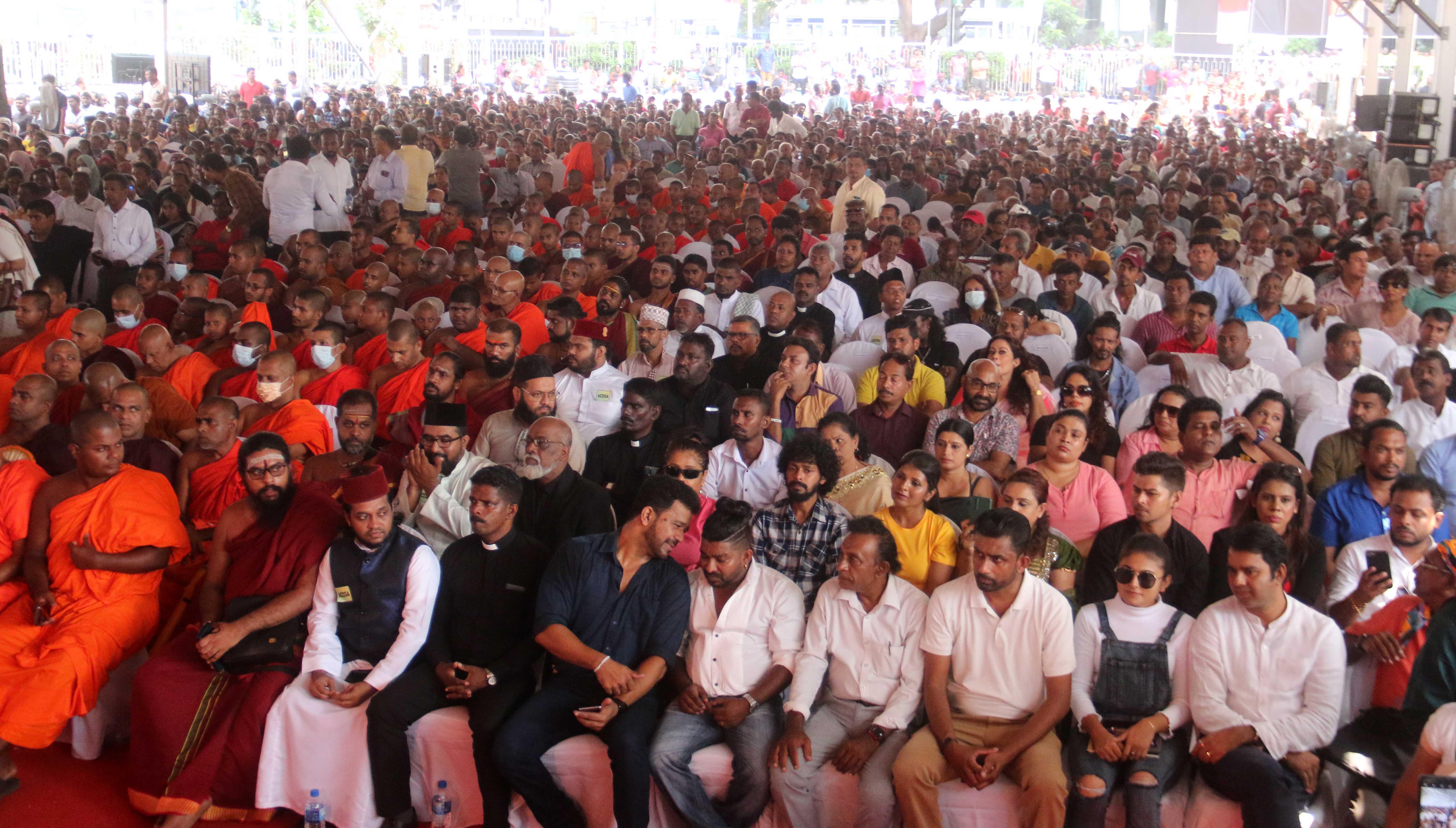 ஸ்ரீலங்கா பொதுஜன பெரமுனவிலிருந்து விலகிய முக்கிய அரசியல் பிரமுகர்களால் ஜனாதிபதி ரணில் விக்கிரமசிங்கவுக்கு ஆதரவளிக்கும் நோக்கில் ஸ்தாபிக்கப்பட்ட புதிய அரசியல் கூட்டணியின் கொழும்பு மாவட்ட முதலாவது பொதுக் கூட்டம் நேற்று சனிக்கிழமை (24) ஹைட் பார்க் மைதானத்தில் இடம்பெற்றது. மைதானம் முழுவதும் நிரம்புமளவுக்கு பெருந்திரளான மக்கள் இக்கூட்டத்தில் பங்கேற்றிருந்தனர்.