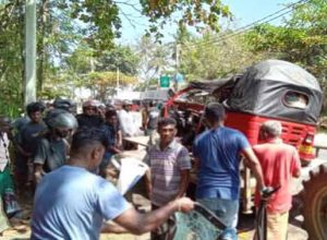 முச்சக்கர வண்டியும் ரிப்பர் வாகனமும் நேருக்கு நேர் மோதியதில் இந்த விபத்து ஏற்பட்டுள்ளது.