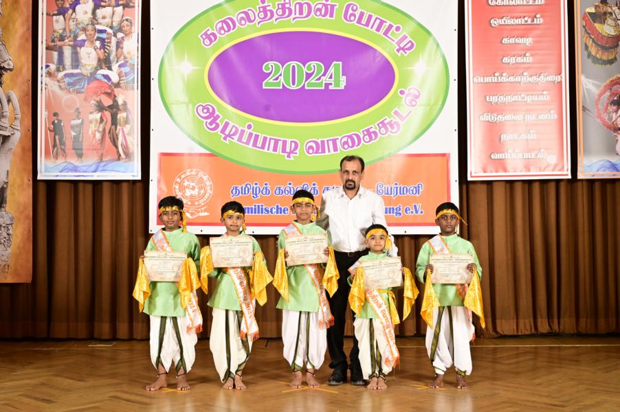 மத்திய மாநிலத் தமிழாலயங்களிடையேயான போட்டிகளிற் பெற்ற புள்ளிகளின் அடிப்படையில் முதல் மூன்று நிலைகளையும் முறையே தமிழாலயம் கிறேபெல்ட், தமிழாலயம் முன்சன்கிளாட்பாக் மற்றும் தமிழாலயம் நொய்ஸ் ஆகியன பெற்றுக்கொண்டன. அவர்களை அரங்கிற்கு அழைத்துச் சிறப்புப் பாராட்டு மடல் வழங்கி வாழ்த்துகளும் பகிரப்பட்டன. இத்தமிழாலயங்களுக்கான சிறப்பு மதிப்பளிப்பு தமிழ்க் கல்விக் கழகத்தின் 34ஆவது அகவை நிறைவு விழா அரங்கில் வழங்கப்படவுள்ளது. நிறைவாகத் தாயக விடியல் மீதான பற்றுறுதியுடனான நம்பிக்கையைத் தொட்டவாறு கலைத்திறன் போட்டி சிறப்பாக நிறைவுற்றது.