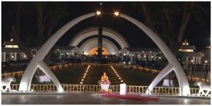 முன்னாள் முதல்வர் கருணாநிதி கடந்த 2018 ஆகஸ்ட் 7-ம் தேதி காலமானார். சென்னை மெரினா கடற்கரையில் அண்ணா நினைவிடம் அருகே அவரது உடல் அடக்கம் செய்யப்பட்டது. அங்கு 2.21 ஏக்கர் பரப்பில் ரூ.39 கோடியில் கருணாநிதிக்கு நினைவிடம் கட்டப்பட்டுள்ளது. அத்துடன், அண்ணா நினைவிடமும் புதுப்பிக்கப்பட்டுள்ளது.அண்ணா, கருணாநிதி நினைவிடங்கள் மொத்தம் 8.57 ஏக்கரில் அமைந்துள்ளன. இதன் நுழைவுவாயிலை கடந்து சென்றதும், அண்ணா, இளங்கோவடிகள், கம்பர் சிலைகளும், அண்ணா அருங்காட்சியகமும் உள்ளது. அண்ணா சதுக்கத்தை கடந்ததும், அமர்ந்து எழுதிக் கொண்டிருக்கும் வகையில் கருணாநிதி சிலை அமைந்துள்ளது. ‘ஓய்வெடுத்துக் கொள்ளாமல் உழைத்தவர் இங்கே ஓய்வு கொண்டிருக்கிறார்’ என்ற வாசகத்துடன் கருணாநிதி சதுக்கம் அமைந்துள்ளது.
