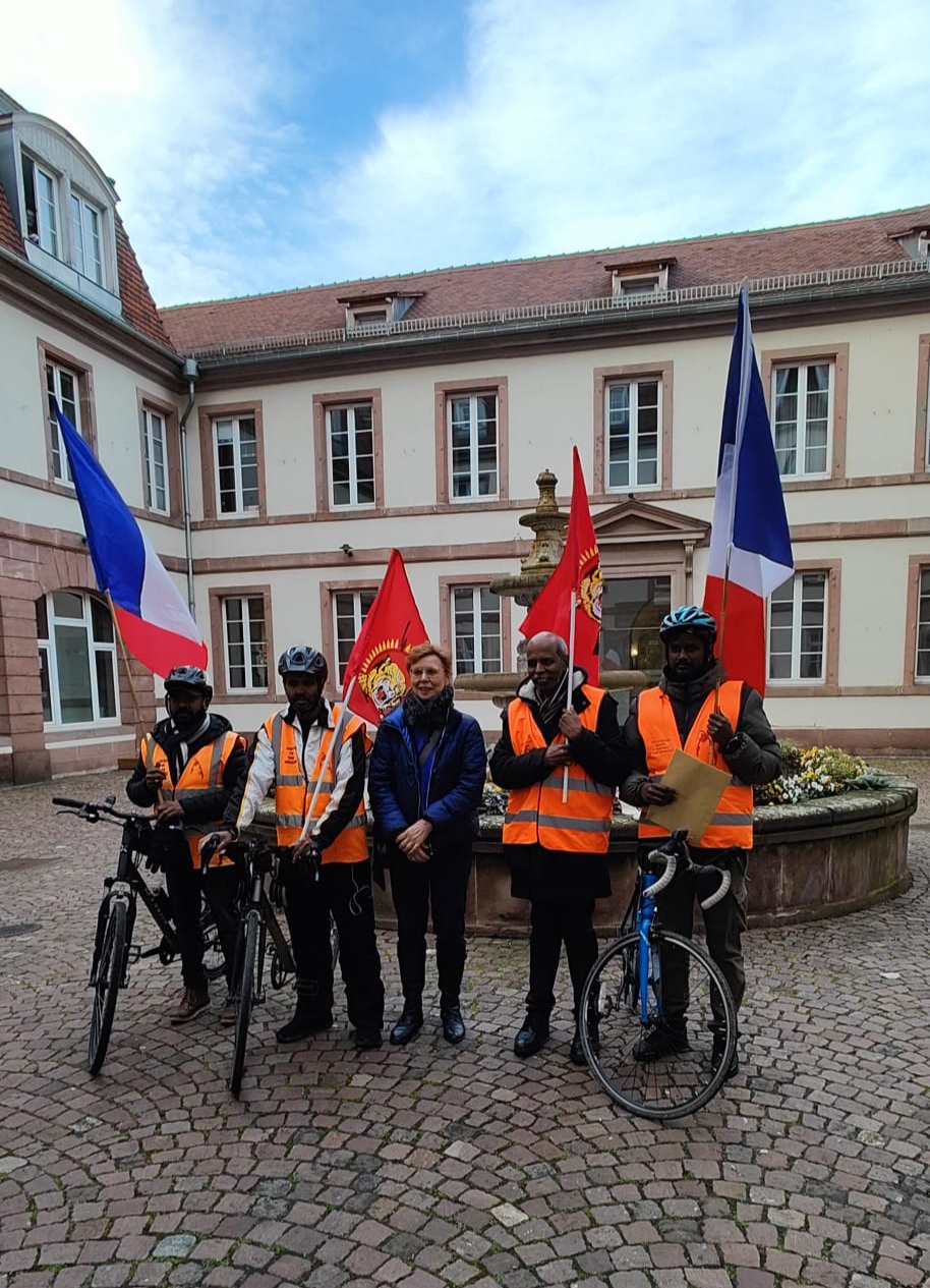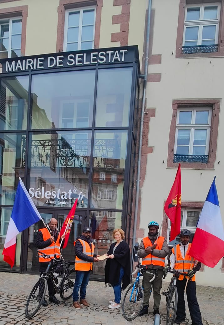 இன்று பிரான்சில் பென்பேட் , செலாட்சாட்,கொல்மார் மாநகர உதவி முதல்வர்களையும், செயளாலர்களையும் சந்தித்து தனது இலக்கு நோக்கி பயணிக்கின்றது. நேற்ற தினம் பல அரசியல் சந்திப்புகளை மேற்கொண்டிருந்தது. அறவழிப் போராட்டத்தின் இலக்கு பற்றி மாநகர உதவி முதல்வருடனான கலந்துரையாடல் நடைபெற்றது, இதில் சிறிலங்கா சிங்களபெளத்த இனவாத அரசால் திட்டமிட்டு நடந்தப் பட்ட தமிழினப் படுகொலைகள் பற்றியும். தற்போது தமிழீழத்தில் திட்டமிட்டு நடத்தப் பட்டுக் கொண்டிருக்கும் தமிழின அழிப்பு பற்றியும் ஆதாரங்களுடன் எடுத்துரைக்கப் பட்டது. தமிழர்களுடைய நியாயமான கோரிக்கை அடங்கிய மனுக்களைக் கையளிக்கப்பட்டது,இதனை தொடர்ந்து மாநகர துணை முதல்வர்களுடனும் சந்திப்புகளை மேற்கொண்டு பிரான்சு அரசு தமிழ் மக்களின் நியாயமான கோரிக்கையை நிறைவேற்ற ஆவண செய்ய வேண்டுமென கேட்கப்பட்டது.