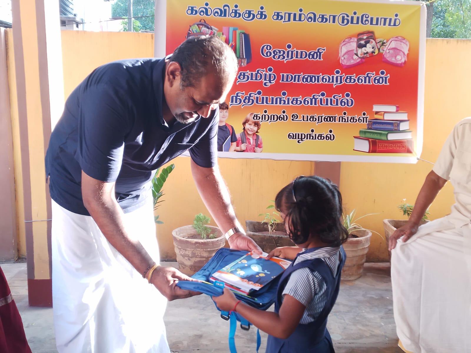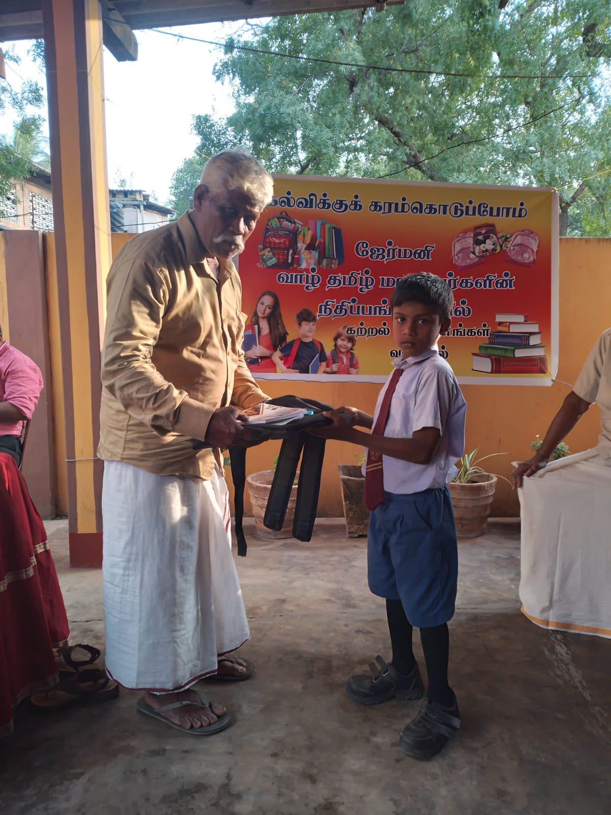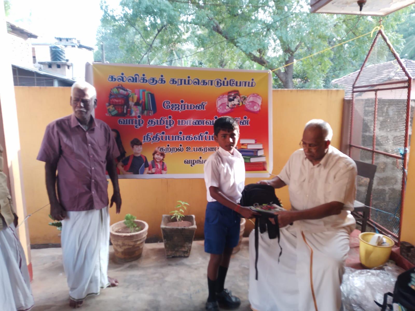 கல்விக்கு கரம்கொடுப்போம் செயற்திட்டத்தின்கீழ் யாழ் மாவட்டத்தில் 60 மாணவருக்கான கற்றல் உபகரணம் யேர்மன் வாழ் தமிழ் மாணவர்களின் நிதிப் பங்களிப்பில் கற்றல் உபகரணம் மற்றும் பொத்தக பை என்பன 27.02.2024 இன்று வழங்கி வைக்கப்பட்டது இதில் கரவெட்டி மற்றும் நெல்லியடி பகுதிகளைச்சேர்ந்த மாணவர்கள் கற்றல் உபகரணங்களைபெற்று பயன்பெற்றனர்.மேலும் யாழ் மாவட்டத்தில் 45 மாணவருக்கான கற்றல் உபகரணம் யேர்மன் வாழ் தமிழ் மாணவர்களின் நிதிப் பங்களிப்பில் கற்றல் உபகரணம் மற்றும் பொத்தக பை என்பன வழங்கி வைக்கப்பட்டது. வல்வெட்டித்துறை ஆதிகோவிலடி பகுதியை சேர்ந்த மாணவர்கள் கற்றல் உபகரணங்களைபெற்று பயன்பெற்றனர்.