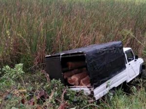 இவர்களிடமிருந்து தப்பிக்கும் நோக்கில் கெப் வண்டியில் வேகமாகப் பயணித்த போது கெப் வண்டி சதுப்பு நிலத்தில் சிக்கிய நிலையில் சந்தேக நபர்கள் தப்பியோடியுள்ளனர் .
