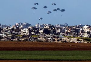 அப்போது, அமெரிக்க விமானப்படை விமானங்கள் நிவாரண பொருட்களை வீசின. பரசூட் மூலம் நிவாரண பொருட்கள் காஸாவில் தரையிறங்கின. அப்போது, நிவாரண பொருட்களின் தொகுப்பு ஒன்று பரசூட் திறக்காததால் அதிவேகமாக கீழே விழுந்தது. அது அகதிகள் முகாமில் உணவுக்காக காத்திருந்தவர்கள் மீது விழுந்தது. இந்த சம்பவத்தில் 5 பேர் உயிரிழந்தனர். மேலும், சிலர் படுகாயமடைந்தனர்.