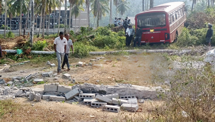 குறித்த பல்கலைக்கழகம் அருகே பஸ் கட்டுப்பாட்டையிழந்து ஜயவர்தனபுர பல்கலைக்கழகத்தின் மதிலின் ஒரு பகுதியில் மோதி விபத்துக்குள்ளானது.