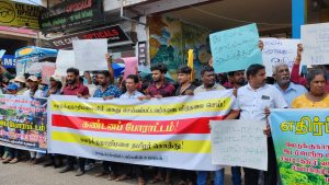 இதன்போது ஆர்ப்பாட்டத்தில் ஈடுபட்டவர்கள் ‘ பொலிஸ் அராஜகம் ஒழிக, வெடுக்குநாறி எங்கள் சொத்து, கைது செய்யப்பட்டவர்களை வசிடுதலை செய், வழிபாட்டு உரிமையை தடுக்காதே, சிவ வழிபாட்டை தடை செய்யாதே, வடக்கு – கிழக்கு தமிழர் தாயகம், பொய் வழக்கு போடாதே, பௌத்தமயமாக்கலை உடனே நிறுத்து” என எழுதப்பட்ட சுலோக அட்டைகளை ஏந்தியிருந்ததுடன் கோசங்களையும் எழுப்பினர்.