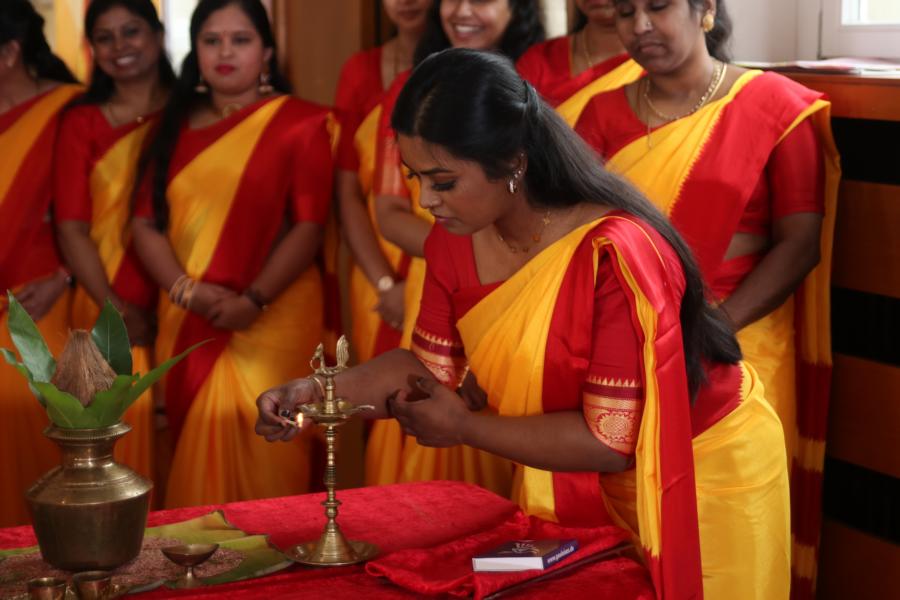 சிறப்பு விருந்தினர்கள் அரங்குக்கு அழைத்து வரப்பட்டதைத் தொடர்ந்து தமிழர் ஒருங்கிணைப்புக் குழு துணைப்பொறுப்பாளர். திரு ஜெயசங்கர் சுப்ரமணியம், தமிழர் ஒருங்கிணைப்புக் குழு தாயகநலன் பொறுப்பாளர் ராஜரட்ணம் ராஜன், தமிழர் ஒருங்கிணைப்புக் குழு மத்திய மாநிலப் பொறுப்பாளர் திரு சின்னையா நாகேஸ்வரன், தமிழர் ஒருங்கிணைப்புக் குழு கலைபண்பாட்டுக்கழகப் பொறுப்பாளர் ஐவுவுயு தேர்வுப்பொறுப்பாளர், திரு சுந்தரலிங்கம் கோபிநாத், இளையோர் அமைப்புப் பொறுப்பாளர் செல்வன் சயன் கேதீஸ்வரன்;; தமிழ்க் கல்விக் கழகத் துணைப் பொறுப்பாளர் , தேர்வுப் பொறுப்பாளர் திரு சேரன் யோகேந்திரன், தமிழ்க் கல்விக் கழக முன்னனிச் செயற்பாட்டாளர்கள், தமிழ்க் கல்விக் கழக மத்திய மாநிலச் செயற்பாட்டாளர்களில் ஒருவரான தமிழ்வாரிதி தமிழ்மாணி திரு செல்லர் தெய்வோந்திரம் , தமிழ்க் கல்விக் கழக மத்திய மாநிலச் செயற்பாட்டாளர்களில் ஒருவரான திருமதி மோகனா புண்ணியமூர்த்தி, தமிழ்க் கல்விக் கழக வடமாநிலச் செயற்பாட்டாளர் தமிழ்வாரிதி தமிழ்மாணி திருமதி சுபத்திரா யோகேந்திரன், தமிழ்க் கல்விக் கழக மத்திய மாநிலச் செயற்பாட்டாளர்களில் ஒருவரான திருமதி பிரேமினி றஞ்சித், தமிழ்ப் பெண்கள் அமைப்பு துணைப் பெறுப்பாளர் செல்வி தமிழினி பத்மநாதன் ,தமிழ்ப் பெண்கள் அமைப்பு லண்டவ் நகரச் செயற்பாட்டாளர் திருமதி இந்திராதேவி விமல், தமிழ்ப் பெண்கள் அமைப்பு மூத்த உறுப்பினர் திருமதி சாந்தா கிருஸ்ணா ஐயர் அவர்களினால் மங்கல விளக்கேற்றி வைக்கப்பட்டுப் போட்டிகளுக்குள் நுழைந்தோம்.
