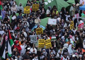 காசா யுத்தத்தின் மத்தியில் பாலஸ்தீனத்திற்கு ஆதரவு தெரிவிப்பதற்காகவும் அமெரிக்க பல்கலைகழகங்கள் இஸ்ரேலின் மனித உரிமை மீறல்களில் தங்களுக்கு உள்ள தொடர்பை முறித்துக்கொள்ள வேண்டும் என வேண்டுகோள் விடுப்பதற்காகவும் வோசிங்டனை சேர்ந்த மாணவர்களும் பேராசிரியர்களும் செயற்பாட்டாளர்களும் அங்குகுழுமியுள்ளனர்.