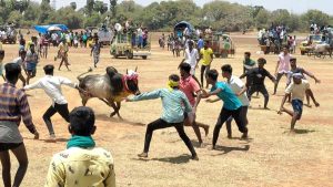 மேலும் விளைநிலங்கள், கண்மாய் பொட்டல்களில் கட்டுமாடுகளாக 200-க்கும் மேற்பட்ட காளைகள் ஆங்காங்கே அவிழ்த்துவிடப்பட்டன. மாடுகள் முட்டியதில் 11 பேர் காயமடைந்தனர். நான்கு பேர் மேல் சிகிச்சைக்காக காரைக்குடி அரசு மருத்துவமனைக்கு அனுப்பி வைத்தனர். நடிகர் கஞ்சாகருப்பு உள்ளிட்ட ஆயிரத்துக்கும் மேற்பட்டோர் மஞ்சுவிரட்டை கண்டு ரசித்தனர்.