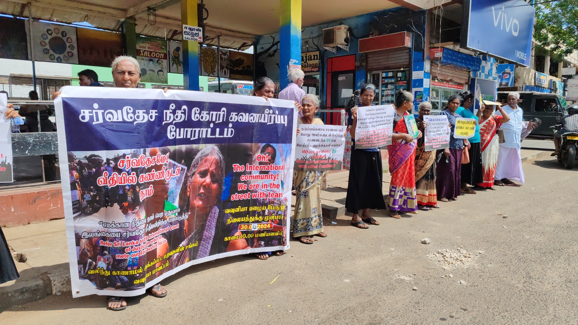 குறித்த ஆர்ப்பாட்டத்தின் போது எங்கே எங்கே உறவுகள் எங்கே கையில் ஒப்படைக்கப்பட்ட உறவுகள் எங்கே, போன்ற கோஷங்களை எழுப்பியவாறும் பதாதைகளை தாங்கியவாறும் ஆர்ப்பாட்டத்தில் ஈடுபட்டிருந்தனர்.