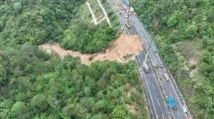 மலைப் பகுதியில் சுமார் 18 மீட்டர் நீளத்துக்கு சாலை இடிந்து விழுந்ததில் 18 கார்கள் அதில் சரிந்து உருண்டோடின. இந்த விபத்தில் 24 பேர் உயிரிழந்தனர். சுமார் 30 பேர் மீட்கப்பட்டு, மருத்துவமனையில் சேர்க்கப்பட்டுள்ளனர்.