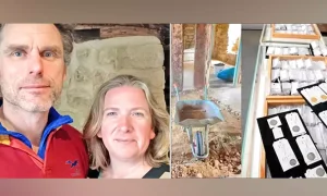 இங்கிலாந்தில் உள்ள தெற்கு போர்டான் பகுதியை சேர்ந்த பெக்கி- ராபர்ட் தம்பதி பழைய வீடு ஒன்றை வாங்கினர். அதை புதுப்பிக்கும் வேலைகளை தம்பதி செய்து கொண்டிருந்தனர். அப்போது வீட்டின் சமையல் அறையின் தரைப்பகுதியை மண்வெட்டியால் கொத்தி கொண்டிருந்த போது அவர்களது கண்களில் ஒரு பானை தென்பட்டது.