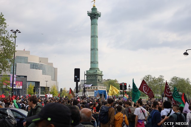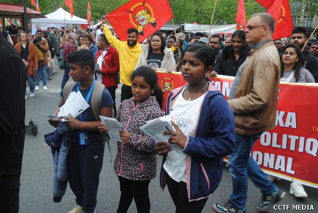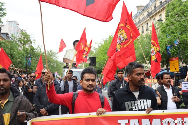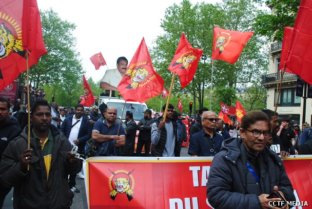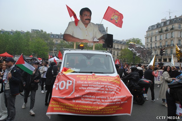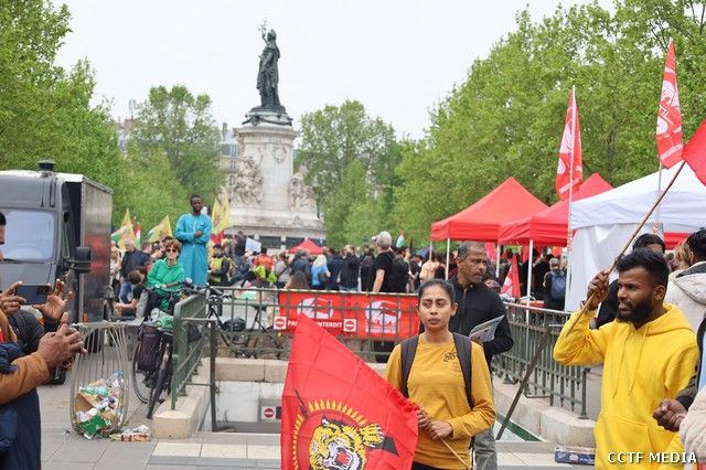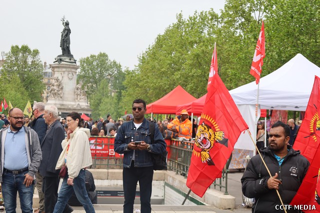 பிரான்சில் தமிழீழ தேசமக்களாக தமிழர் ஒருங்கிணைப்புக்குழுவின் ஏற்பாட்டில் முன்னெடுக்கப்பட்ட மே 1 தொழிலாளர் நாள் பேரணி Republique பகுதியில் இருந்து மதியம் 14.00 மணிக்கு ஆரம்பமாகியது. தமிழீழத் தேசியத்தலைவரின் திருவுருவப்படம் தாங்கிய ஊர்தியின் மத்தியில் தமிழீழக்கொடிகளைக் கைகளில் ஏந்திய தமிழீழ மக்களும் உணர்வாளர்களும் சிங்கள பெளத்த பேரினவாதம் தொடர்ந்தும் 75 ஆண்டுகளாக திட்டமிட்ட வகையில் அனைத்து வழிகளிலும் மேற்கொண்டுவரும் தமிழின அழிப்பை வெளிப்படுத்திய படங்கள் மற்றும் பிரெஞ்சு மொழியிலான சுலோகங்களையும் தாங்கியவாறு பேரணியில் உணர்வோடு கலந்துகொண்டனர்.