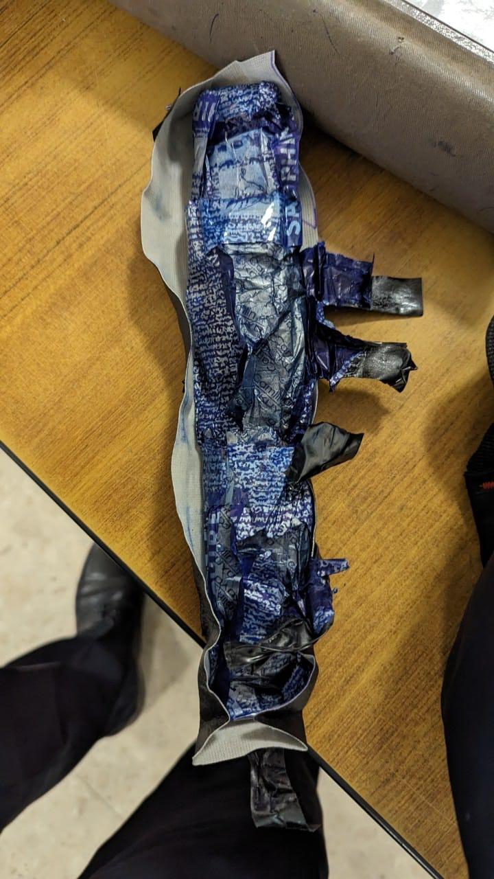 பரிசோதனை செய்யப்படும் இயந்திரங்களில் அகப்படாமல் இருக்க கார்பன் தாள்களில் அவை கவனமாகச் சுற்றப்பட்டிருந்ததாகப் பாதுகாப்புப் படையினர் தெரிவித்தனர் .