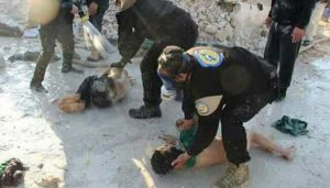 விஷவாயு தாக்குதலுக்கு ரஷ்ய மற்றும் சிரிய ராணுவம் தான் காரணம் எனவும் குற்றஞ்சாட்டப்பட்டு வரும் நிலையில், குளோரின் விஷ வாயுவை பீப்பாயில் அடைத்து சிரிய ராணுவம் ஹெலிகாப்டர் மூலம் வீசியதாக இந்த தாக்குதல் தொடர்பாக ஐ.நா. சபை பிரதிநிதிகள் நடத்திய விசாரணையில் தெரியவந்துள்ளது.