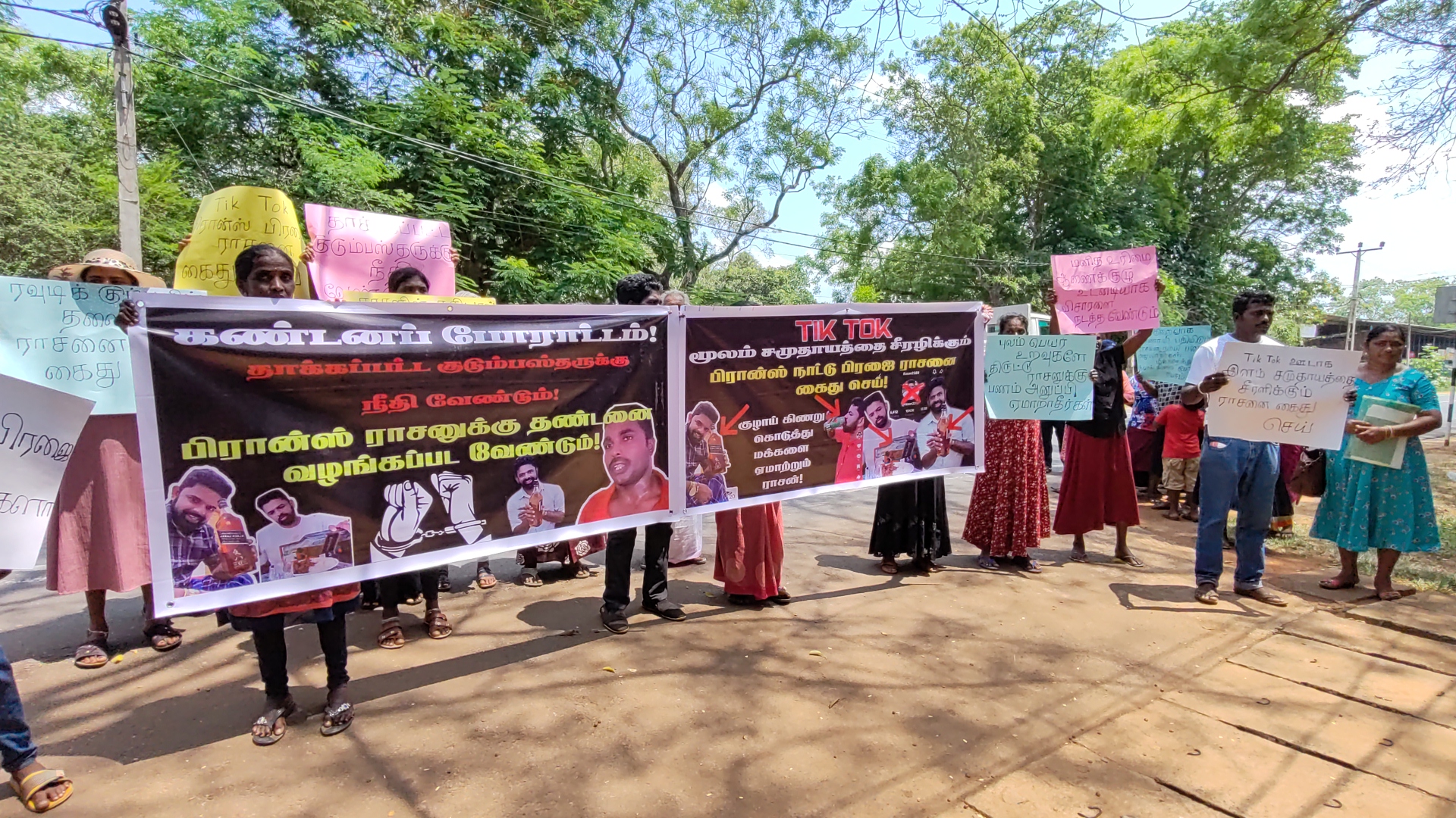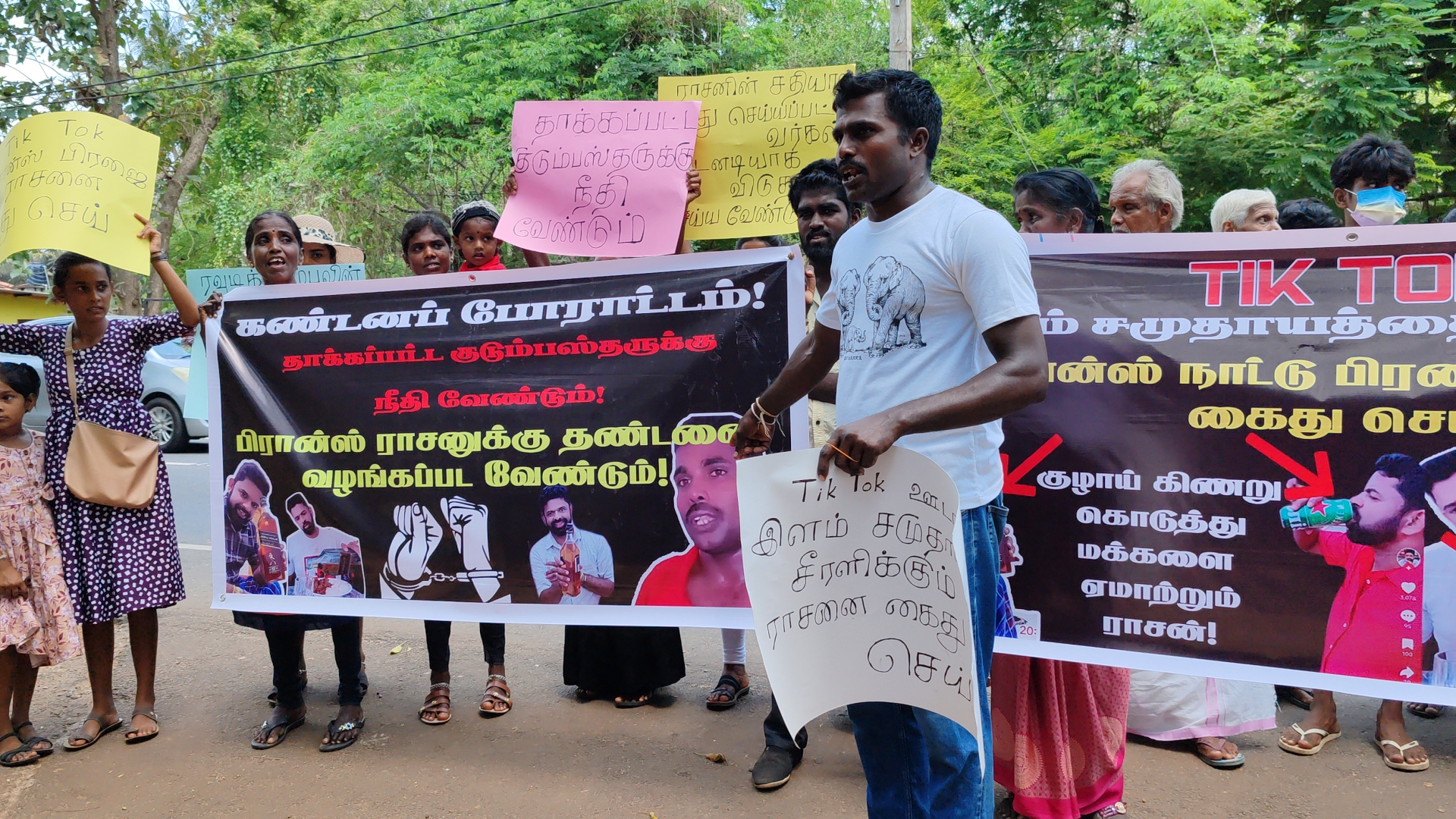 ஆர்ப்பாட்டத்தில் பங்கேற்றவர்கள் ‘பொலிஸார் பக்கசார்பாக செயற்படாது குழாய் கிணறு ராசனை கைது செய்’, ‘பொலிஸ் நிலையத்திற்குள் வைத்து தாக்கியவருக்கு பாதுகாப்பு கொடுக்காதே’, ‘பொது மக்கள் மீது தாக்குதல் நடத்திய பொலிஸார் மீதும் நடவடிக்கை வேண்டும்’ என்றவாறு கோஷங்களை எழுப்பினர்.