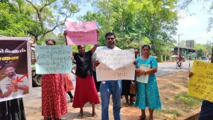 வவுனியா, புளியங்குளம் பொலிஸ் நிலையத்தில் பொலிஸார் முன்னிலையில் இளம் குடும்பஸ்தரை தாக்கிய நபரை கைது செய்யுமாறு கோரி வவுனியா – கண்டி வீதியில் அமைந்துள்ள சிரேஸ்ட பொலிஸ் அத்தியட்சகர் அலுவலகம் முன்பாக இன்று (06) கவனயீர்ப்பு போராட்டம் இடம்பெற்றது.