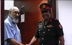 யாழ்.மாவட்ட பாதுகாப்பு படைகளின் புதிய கட்டளை தளபதியாக கடமை ஏற்றிருக்கும் மேஜர் ஜெனரல் ஹெட்டியாராச்சி வடக்கு மாகாண முதலமைச்சர் சி.வி.விக்னேஸ்வரனை அவருடைய இல்லத்தில் சிநேகபூர்வமாக சந்தித்து கலந்துரையாடியுள்ளார்.