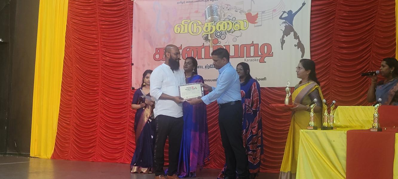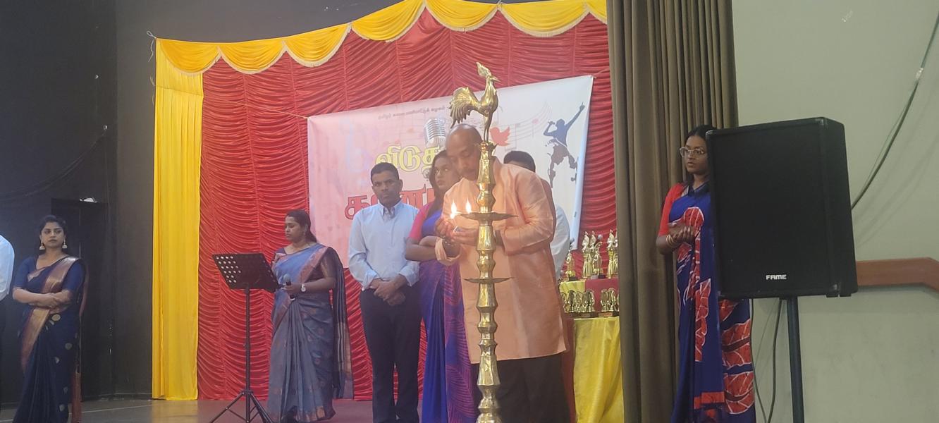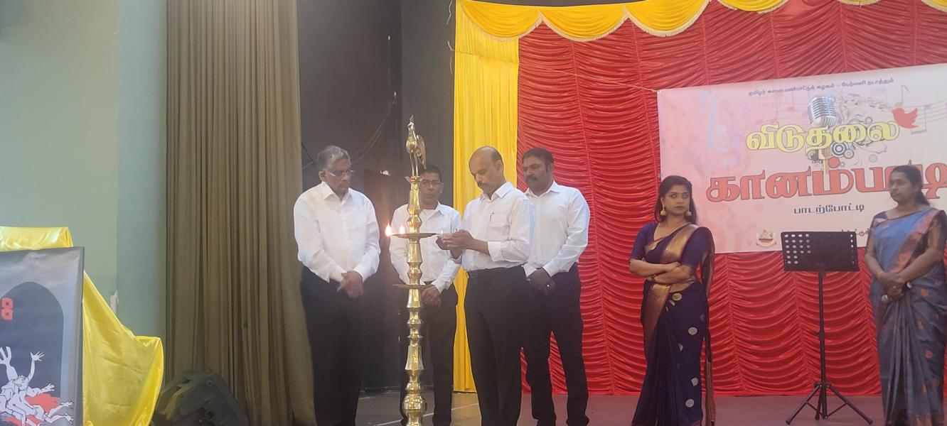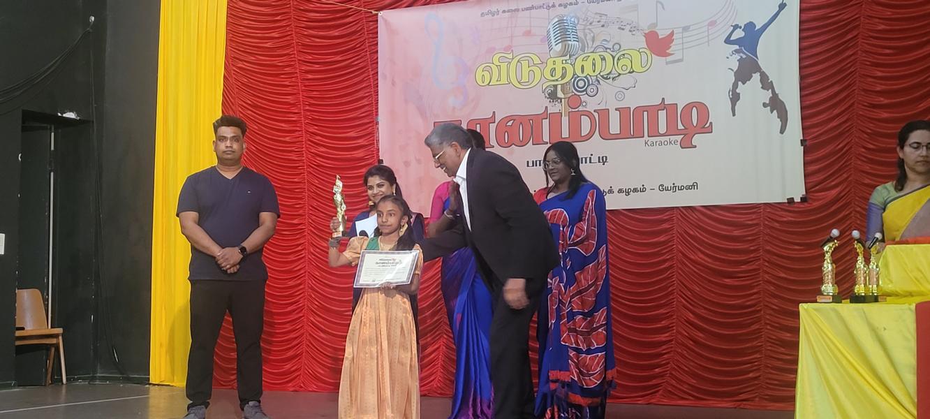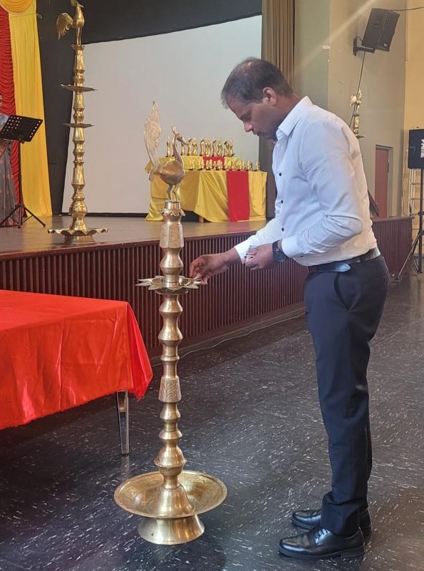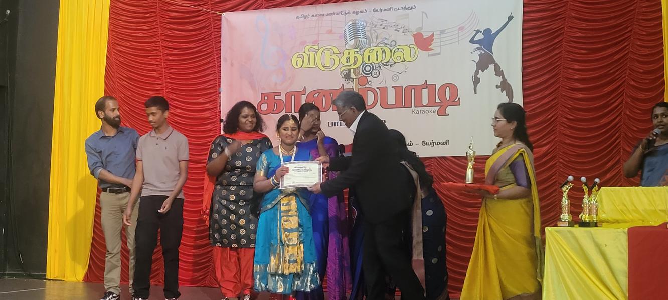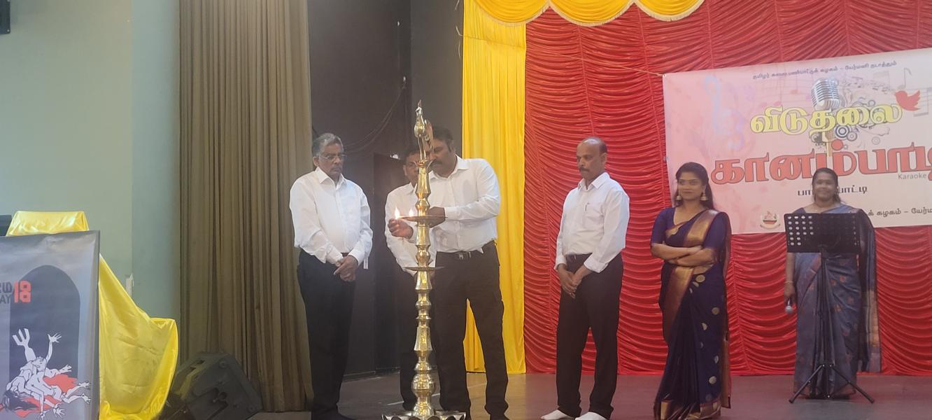 தொடர்ந்து மங்கல விளக்கினை தழிழர் ஒருங்கிணைப்புக்குழுவின் யேர்மன் கிளைப் பொறுப்பாளர் திரு. யோன்பிள்ளை சிறிரவீந்திரநாதன் , தமிழர் ஒருங்கிணைப்புக்குழுவின் மத்தியமாநிலம் 1இன் பொறுப்பாளர் திரு. சின்னையா நாகேஸ்வரன், தமிழர் ஒருங்கிணைப்புக்குழுவின் வடமத்திய மாநிலப் பொறுப்பாளர் திரு. முத்துவேலு இராசா , தமிழர் விளையாட்டுக்கூட்டமைப்பின் யேர்மன் கிளைப் மொறுப்பாளர் திரு. தர்மலிங்கம் இராஜகுமாரன் , தமிழர் கலைபண்பாட்டுக்கழக மிருதங்க, தபேலா வித்துவான் திரு. சண்முகலிங்கம் தேவகுருபரன் , தமிழர் ஒருங்கிணைப்புக்குழுவின் சார்லண்ட் மாநிலப் பொறுப்பாளர் திரு. பரநிருபசிங்கம் கனகசபை , தமிழர் ஒருங்கிணைப்புக்குழுவின் அரசியற்துறைப் பொறுப்பாளர் திரு. திருநிலவன் ஆகியோருடன் போட்டியின் நடுவர்களான இசைக்கலைமணி தயானந்தன் அஜானா, இசைக்கலைமணி சிவானந்தராஜா மிர்துளா, இசைக்கலைமணி சிவானந்தராஜா ரம்யா ஆகியோர் மங்கல விளக்கினை ஏற்றிவைத்து சிறப்பித்தனர்.