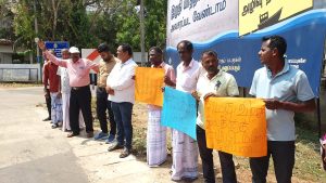 மகாவலி அபிவிருத்தியின் பெயரால் மேற்கொள்ளப்படும் நில ஆக்கிரமிப்பை நிறுத்தக் கோரி முல்லைத்தீவு மாவட்டத்தை சேர்ந்த கொக்குதொடுவாய், கொக்கிளாய் கருநாட்டுக்கேணி பிரதேச மக்களினால் இன்று (08) வட மாகாண ஆளுநர் செயலகத்திற்கு முன்பாக கவனயீர்ப்பு போராட்டம் முன்னெடுக்கப்பட்டது.