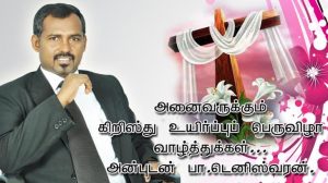 பாவத்தில் கிடந்து அவதியுற்ற இந்த உலகத்தை, உலகத்தின் சகலரையும் மீட்டு விடுதலை கொடுக்க தம்முடைய ஒரே பேறான குமாரன் இயேசுவை இந்த உலகிற்கு அனுப்பி அவருடய மரணம் மற்றும் உயிர்த்தெழுதலால் நம்மனைவருக்கும் பாவத்தில் நின்று முழு விடுதலை தந்தார். அவ்வாறான இந்த உயிர்தெழுதலின் நாளில் எல்லா மனிதருக்கும் விடுதலையும் சந்தோஷமும் நிறைவாக கிடைக்கவேண்டுமென்று பிரார்த்திப்பதோடு.நாட்டிலே அன்பும் சமாதானமும் நிலை பெறவும் உயிர்த்த ஜேசுவின் ஆசிகள் கிடைக்கவும், உலகமெங்கும் வாழும் கிறிஸ்தவர்கள் ஜேசுக்கிறிஸ்துவின் உயிர்ப்பு விழாவை கொண்டாடி மகிழும் இவ்வேளையில் அனைவர் மனங்களிலும் அன்பும் சமாதானமும் நிறைந்து மகிழ்ச்சியாக இவ்விழாவை கொண்டாட அனைத்து கிறிஸ்தவ மக்களுக்கும் எனது உயிர்ப்பு விழா வாழ்த்துக்களை தெரிவித்து கொள்கின்றேன்.என்றும் உங்கள் பா.டெனிஸ்வரன்.