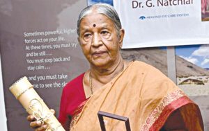 அரவிந்த் கண் மருத்துவமனை இயக்குநரும், பிரபல கண் மருத்துவருமான ஜி.நாச்சியாருக்கு, அவரது சேவையைப் பாராட்டி பத்மஸ்ரீ விருதை கடந்த 9-ம் தேதி டெல்லியில் நடந்த நிகழ்ச்சியில் குடியரசுத் தலைவர் திரவுபதி முர்மு வழங்கினார்.