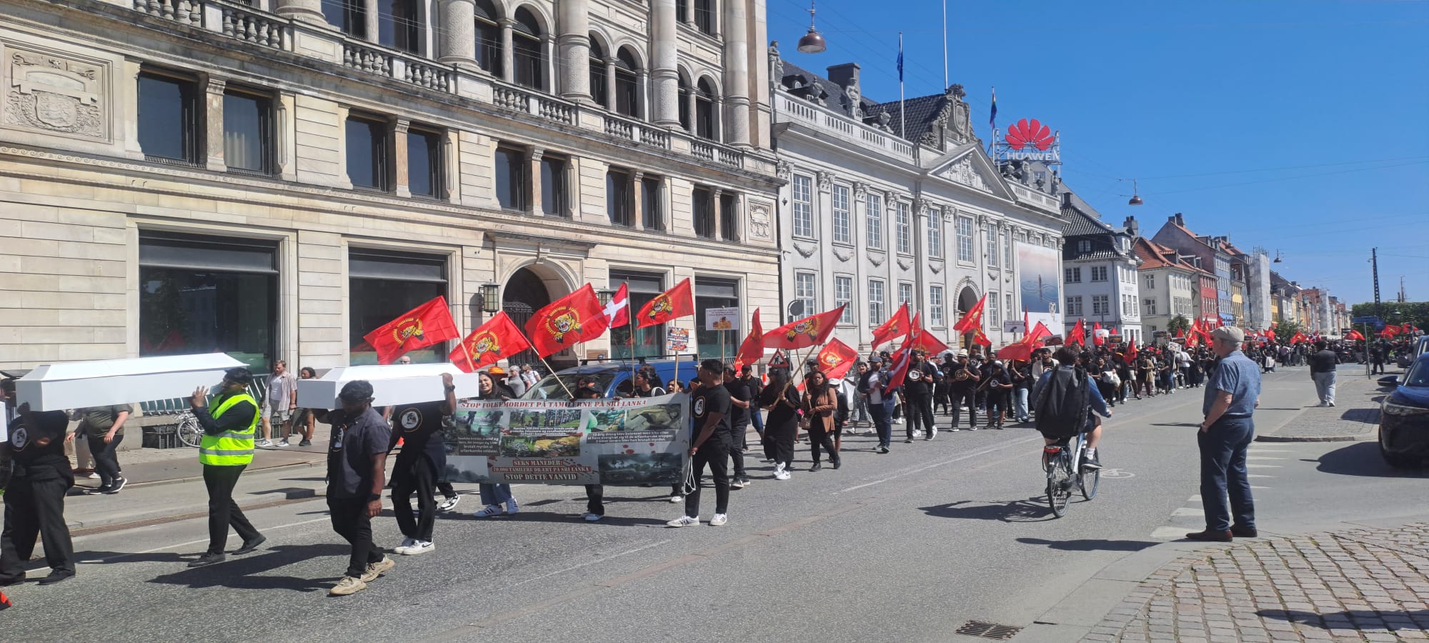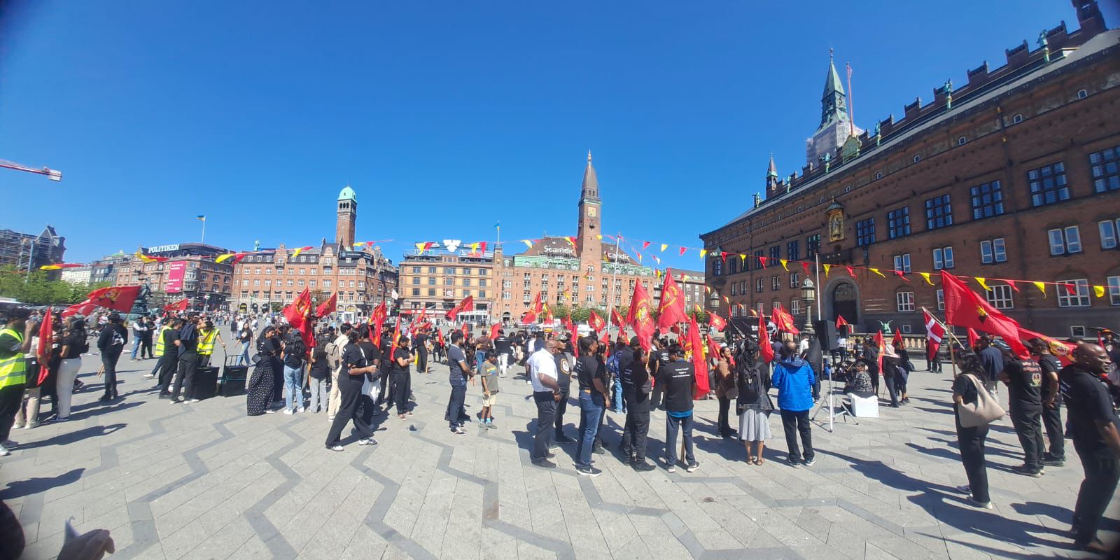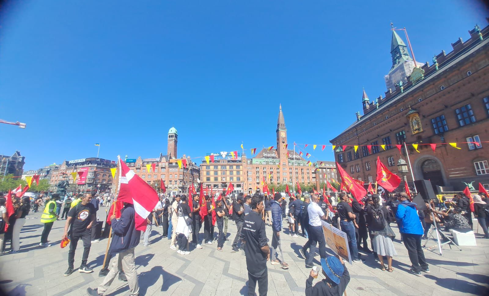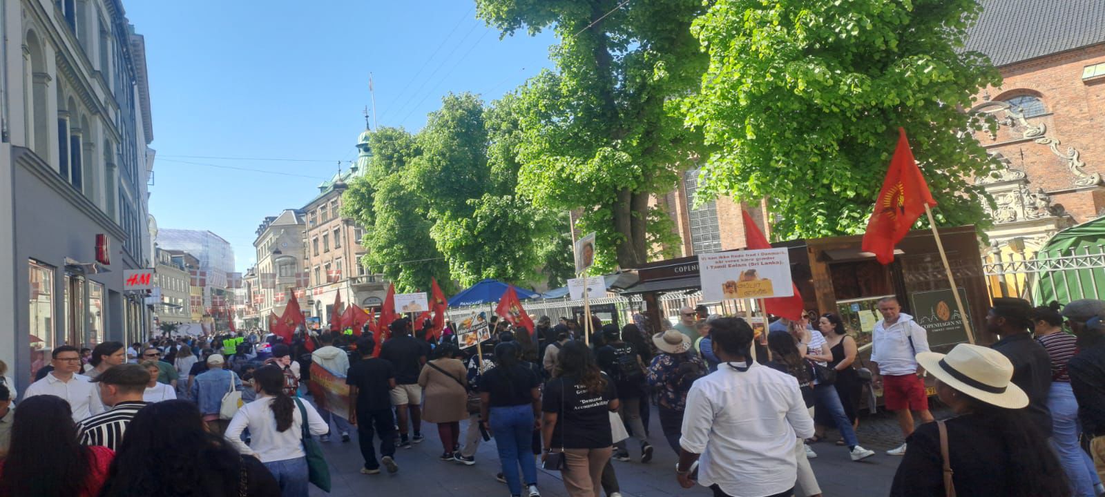இன்று நடைபெற்ற பேரணியானது Sankt Annaes Plads சதுக்கத்தில் ஒன்று கூடிய மக்கள், அங்கிருந்து கோபன்ஹேகன் நகரசபை சதுக்கத்தை நோக்கி எழுச்சிக் கோசங்களுடன் பதாதைகளை உணர்வுகளோடு கையேந்தி மாபெரும் பேரணியாக புறப்பட்டனர்.