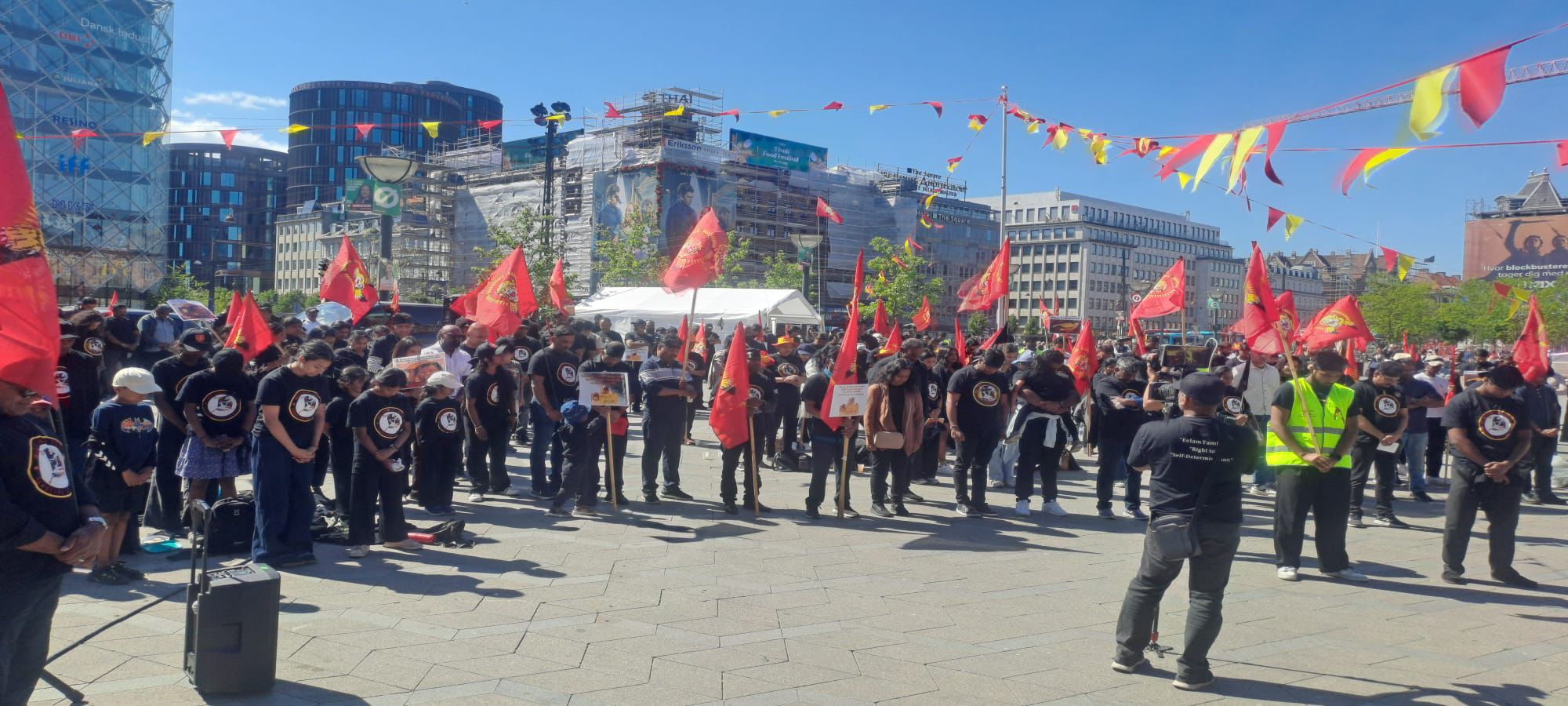 இன்று (18.05.2024 சனி) டென்மார்க் வாழ் தமிழீழ மக்கள் தங்கள் தாயகத்தில் 15 ஆண்டுகளுக்கு முன்னர் இதே காலப்பகுதியில் சிறிலங்கா அரசு மேற்கொண்ட உச்சமான தமிழின அழிப்புக்கு நீதிகேட்டு கவனயீர்ப்பு மற்றும் பேரணியும் முன்னெடுத்தனர். கவனயீர்ப்பானது கடந்த 15.05.2024 அன்று தொடக்கம் டென்மார்க் தலைநகரில் நகரசபை மற்றும் Kongens Nytorv சதுக்கத்தில் மேற்கொள்ளப்பட்டு வந்தது. இக் கவனயீர்ப்பு தாயகத்தில் எம் இனத்துக்கு இழைக்கப்பட்ட அநீதியை பறைசாற்றும் விதத்தில் பதாதைகள், விவரணப் படங்கள் பார்வைக்கு வைக்கப்பட்டதுடன் துண்டுப்பிரசுரங்களும் வளங்கப்பட்டது.