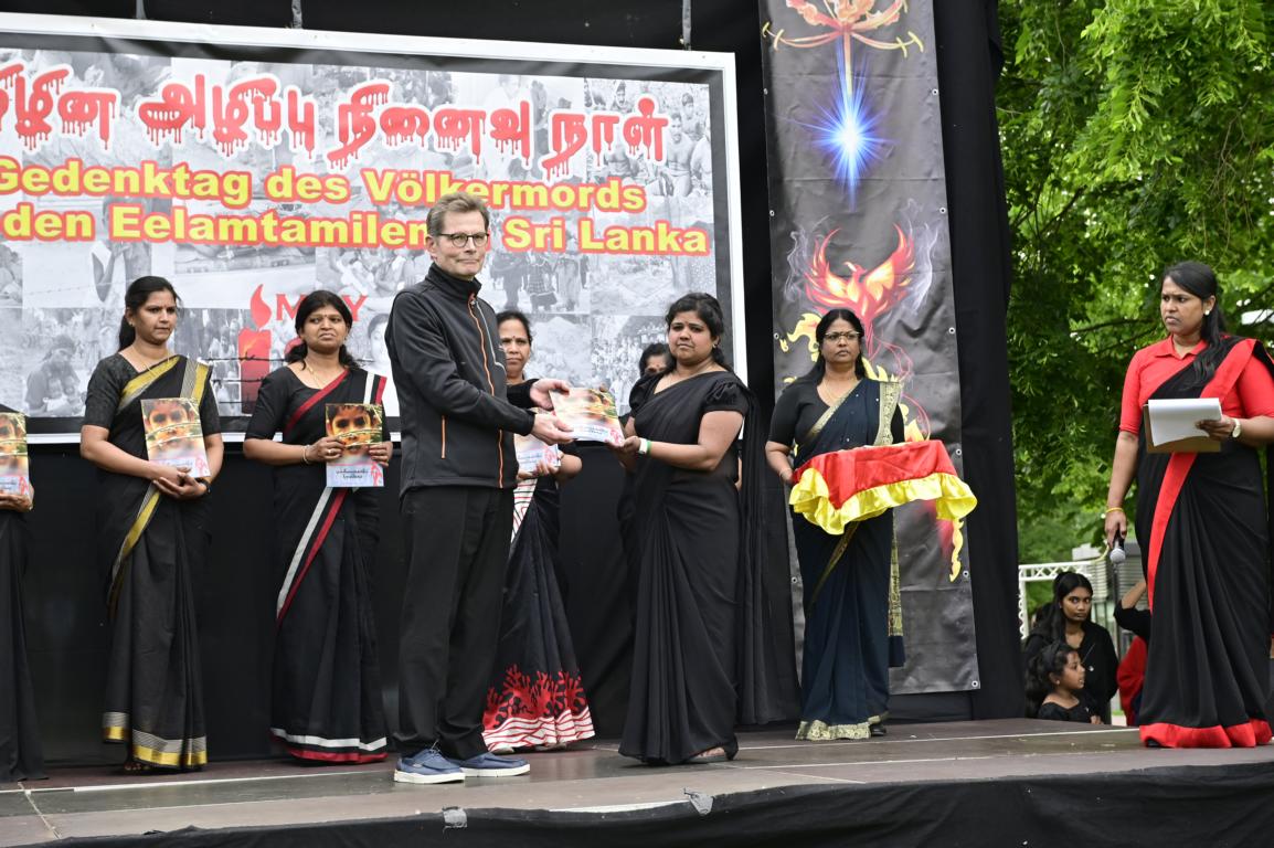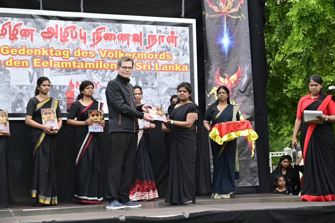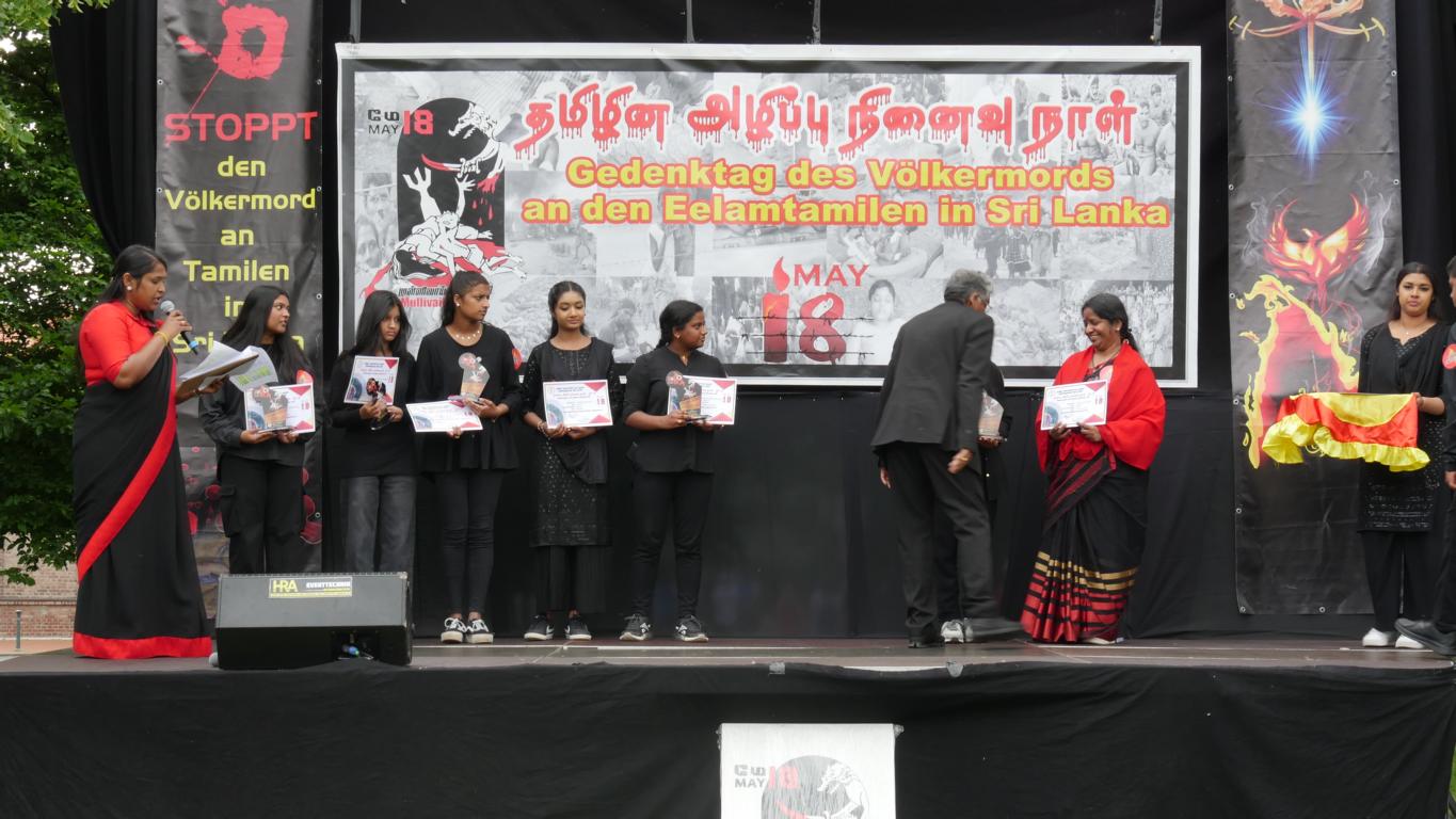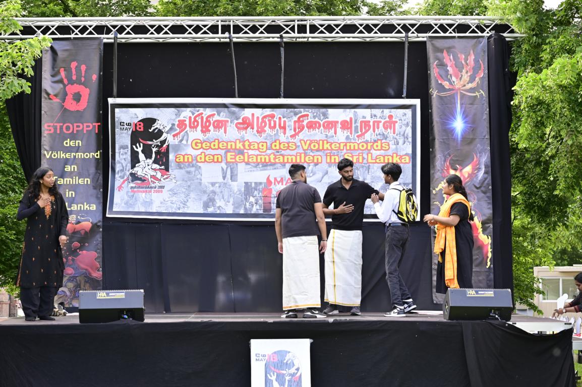 நூலின் இரண்டாவது பிரதியைப் பெற்றுக்கொண்ட திரு. Albert Koolen அவர்கள் நினைவுரையினையும் வழங்கினார். யேர்மன் தமிழ் இளையோர் அமைப்பினது வடிவமைப்பில் முள்ளிவாய்க்கால் இன அழிப்பினைச் சித்தரிக்கும் யேர்மன் மொழியிலான நாடகம் பார்த்தோர் மனங்களை நெகிழச் செய்தது. யேர்மன் கலை பண்பாட்டுக் கழக அசிரியர்களில் ஒருவரான செல்வன்.நிமலன் சத்தியகுமாரின் மாணவர்கள் “ஓலம் கேட்டதா அலை ஓசை கேட்டதா” எனும் பாடலிற்கு உணர்வுபொங்க நடனமாடினர். தமிழர் கலைபண்பாட்டுக்கழகம் அனைத்துலகத்தொடர்பகத்தினால் நடாத்தப்பட்ட தமிழின அழிப்பு தொடர்பான கலைத்திறன் போட்டிகளில் யேர்மன் நாட்டில் கலந்துகொண்ட மாணவர்களுக்கும், வெற்றியீட்டிய மாணவர்களுக்கும் மதிப்பளிப்பு வழங்கப்பட்டது.மதிப்பளிப்பினை யேர்மன் தமிழர் ஒருங்கிணைப்புக்குழுவின் பொறுப்பாளர் திரு.சிறீ இரவீந்திரநாதன் அவர்கள் வழங்கினார். முள்ளிவாய்க்கால் இன அழிப்பின் 15 ஆவது ஆண்டின் வணக்க நிகழ்வில் சிறப்புரையினை திரு. இரா. கதிரவன் (விபி)அவர்கள் வழங்கினார். தொடர்து தமிழ் இளையோர் அமைப்பினைச் சேர்ந்த அனைவரும் ஒருமித்து நின்றபடி உறுதிமொழியினைச் செல்வி.வானதி அவர்கள் வாசிக்க மக்கள் அனைவரும் உறுதிமொழியினை ஏற்றுக்கொண்டனர். நிறைவாக “நம்புங்கள் தமிழீழம் நாளை பிறக்கும்” எனும் பாடலோடும் “தமழரின் தாகம் தமிழீழத் தாயகம்” எனும் தாரக மந்திரத்தோடும் தமிழின அழிப்பு நினைவு நாள் 2024 வணக்க நிகழ்வுகள் எழுச்சியோடு நிறைவு பெற்றது.