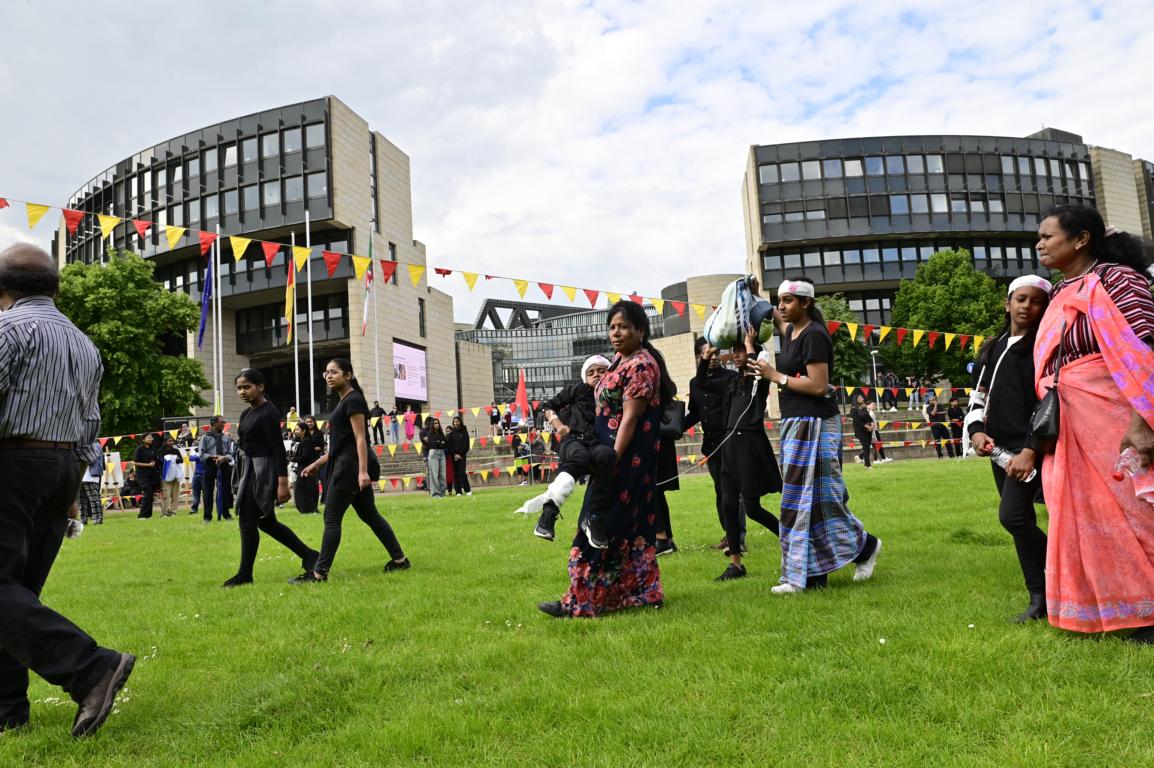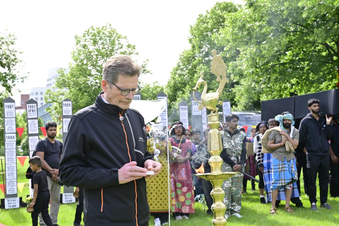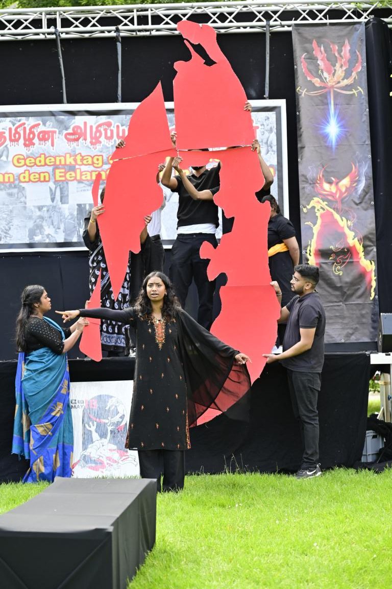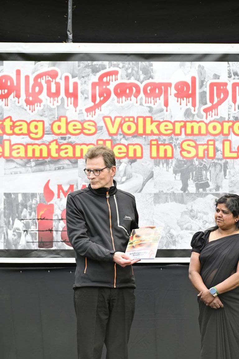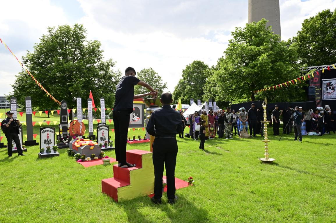 நூலின் இரண்டாவது பிரதியைப் பெற்றுக்கொண்ட திரு. Albert Koolen அவர்கள் நினைவுரையினையும் வழங்கினார். யேர்மன் தமிழ் இளையோர் அமைப்பினது வடிவமைப்பில் முள்ளிவாய்க்கால் இன அழிப்பினைச் சித்தரிக்கும் யேர்மன் மொழியிலான நாடகம் பார்த்தோர் மனங்களை நெகிழச் செய்தது. யேர்மன் கலை பண்பாட்டுக் கழக அசிரியர்களில் ஒருவரான செல்வன்.நிமலன் சத்தியகுமாரின் மாணவர்கள் “ஓலம் கேட்டதா அலை ஓசை கேட்டதா” எனும் பாடலிற்கு உணர்வுபொங்க நடனமாடினர். தமிழர் கலைபண்பாட்டுக்கழகம் அனைத்துலகத்தொடர்பகத்தினால் நடாத்தப்பட்ட தமிழின அழிப்பு தொடர்பான கலைத்திறன் போட்டிகளில் யேர்மன் நாட்டில் கலந்துகொண்ட மாணவர்களுக்கும், வெற்றியீட்டிய மாணவர்களுக்கும் மதிப்பளிப்பு வழங்கப்பட்டது.மதிப்பளிப்பினை யேர்மன் தமிழர் ஒருங்கிணைப்புக்குழுவின் பொறுப்பாளர் திரு.சிறீ இரவீந்திரநாதன் அவர்கள் வழங்கினார். முள்ளிவாய்க்கால் இன அழிப்பின் 15 ஆவது ஆண்டின் வணக்க நிகழ்வில் சிறப்புரையினை திரு. இரா. கதிரவன் (விபி)அவர்கள் வழங்கினார். தொடர்து தமிழ் இளையோர் அமைப்பினைச் சேர்ந்த அனைவரும் ஒருமித்து நின்றபடி உறுதிமொழியினைச் செல்வி.வானதி அவர்கள் வாசிக்க மக்கள் அனைவரும் உறுதிமொழியினை ஏற்றுக்கொண்டனர். நிறைவாக “நம்புங்கள் தமிழீழம் நாளை பிறக்கும்” எனும் பாடலோடும் “தமழரின் தாகம் தமிழீழத் தாயகம்” எனும் தாரக மந்திரத்தோடும் தமிழின அழிப்பு நினைவு நாள் 2024 வணக்க நிகழ்வுகள் எழுச்சியோடு நிறைவு பெற்றது.