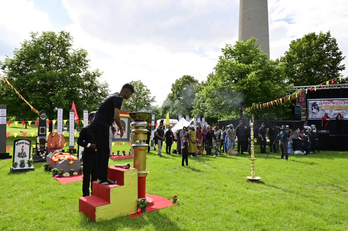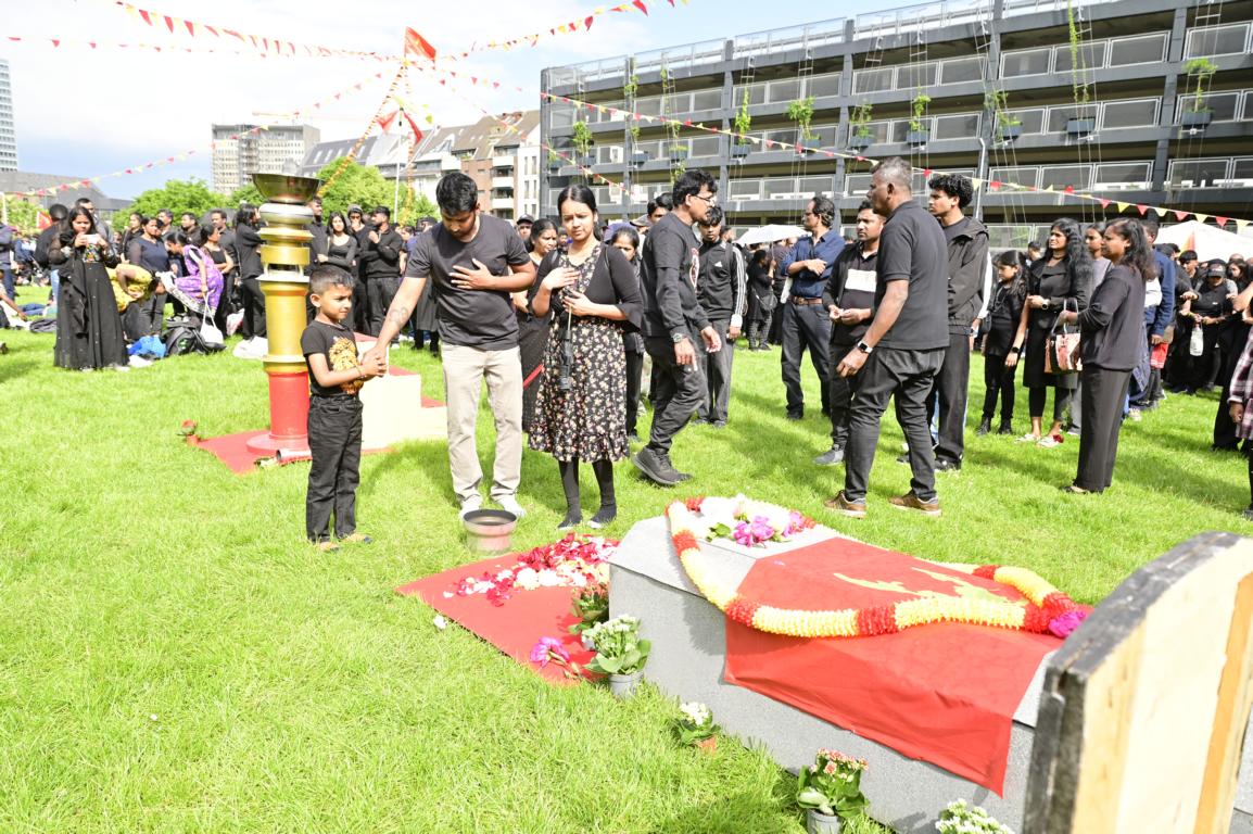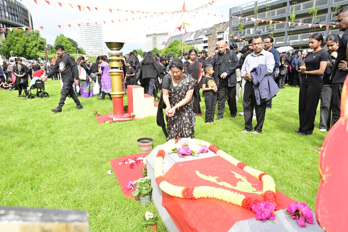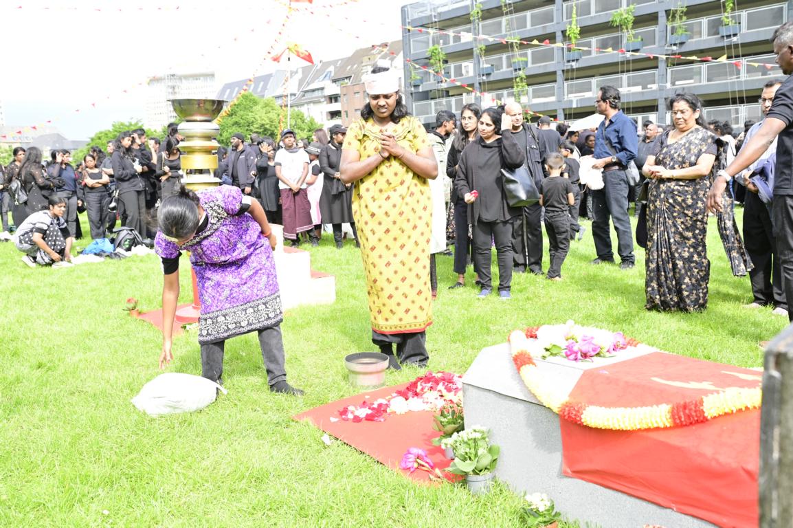 தொடர்ந்து மாவீரர் நினைவுப்படத்திற்கான மலர்மாலையினை 13.07.2008 அன்று மன்னார் பாலமோட்டையில் சிறிலங்கா இராணுவத்துடனான நேரடி மோதலின்போது வீரச்சாவடைந்த போர் உதவிப்படை வீரர் சுப்பிரமணியம் சத்தியபாலன் அவர்களின் மகன் செல்வன். சத்தியபாலன் மயூரன் அவர்களும் பொதுமக்கள் நினைவுப் படத்திற்கான மலர் மாலையினை முள்ளிவாய்க்கால் இன அழிப்பின் நேரடிச் சாட்சியமாக விளங்கிய திருமதி. தீபா இரவிச்சந்திரன் அவர்களும் அணிவித்தனர். இதனைத்தொடர்ந்து வருகை தந்திருந்த மக்கள் அனைவரும் சூடம் ஏற்றி, மலர் தூவி வணங்கினர். அகவணக்கத்தோடு டோட்முண்ட் (Dortmund) தமிழாலய மாணவன் ஸ்ரேபான் அயூடிக் வசந்தராஜ் அவர்களதும், லிவக்கூசன் (Leverkusen) தமிழாலய மாணவி சித்திரா வினோதன் அவர்களுதும் கவி வணக்கமும் மதரக்குரலோன் திரு. கண்ணன் அவர்களது இசை வணக்கமும் இடம்பெற்றது.