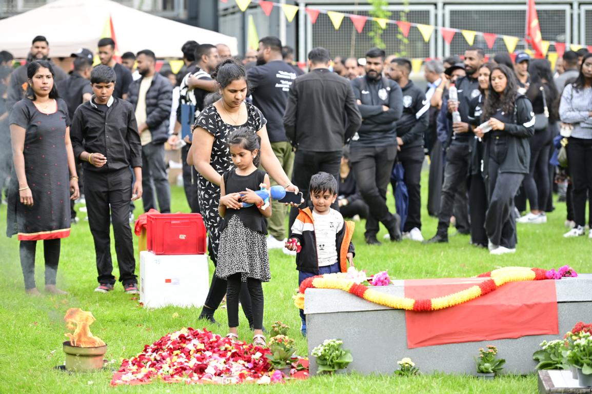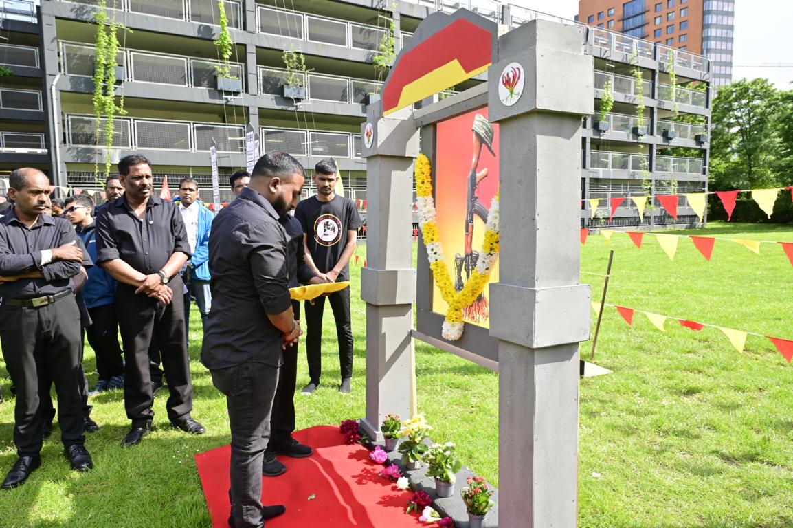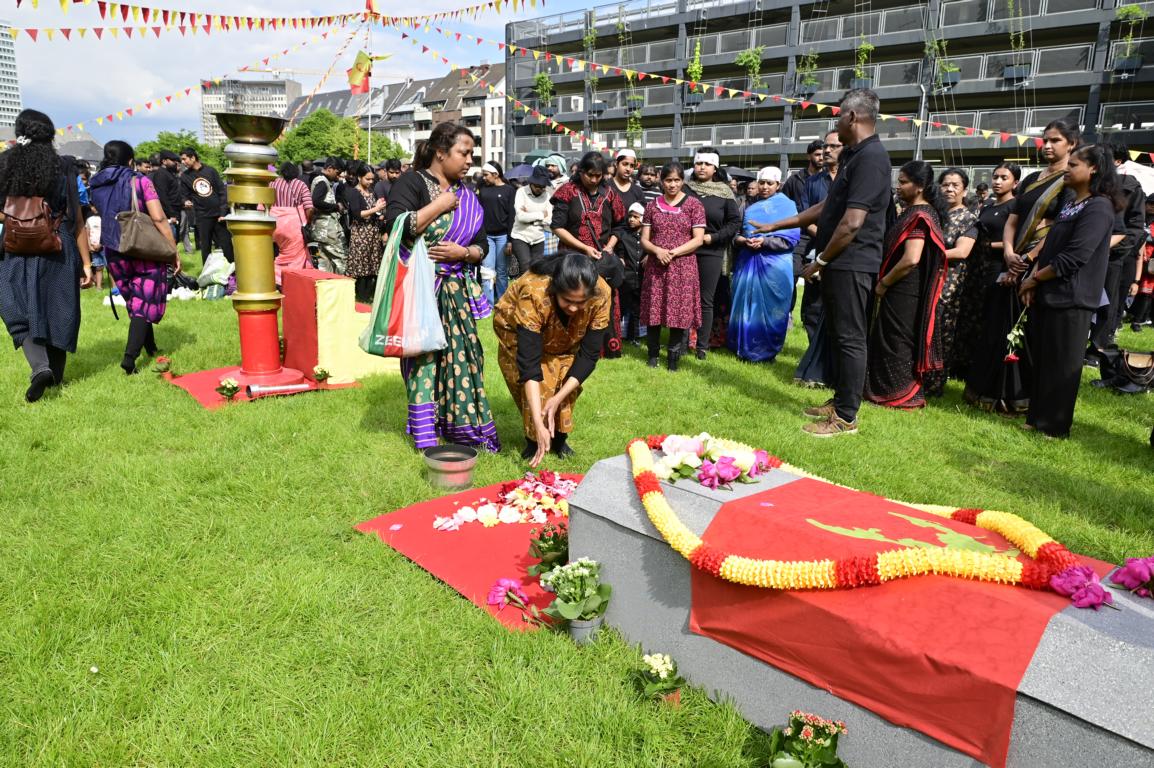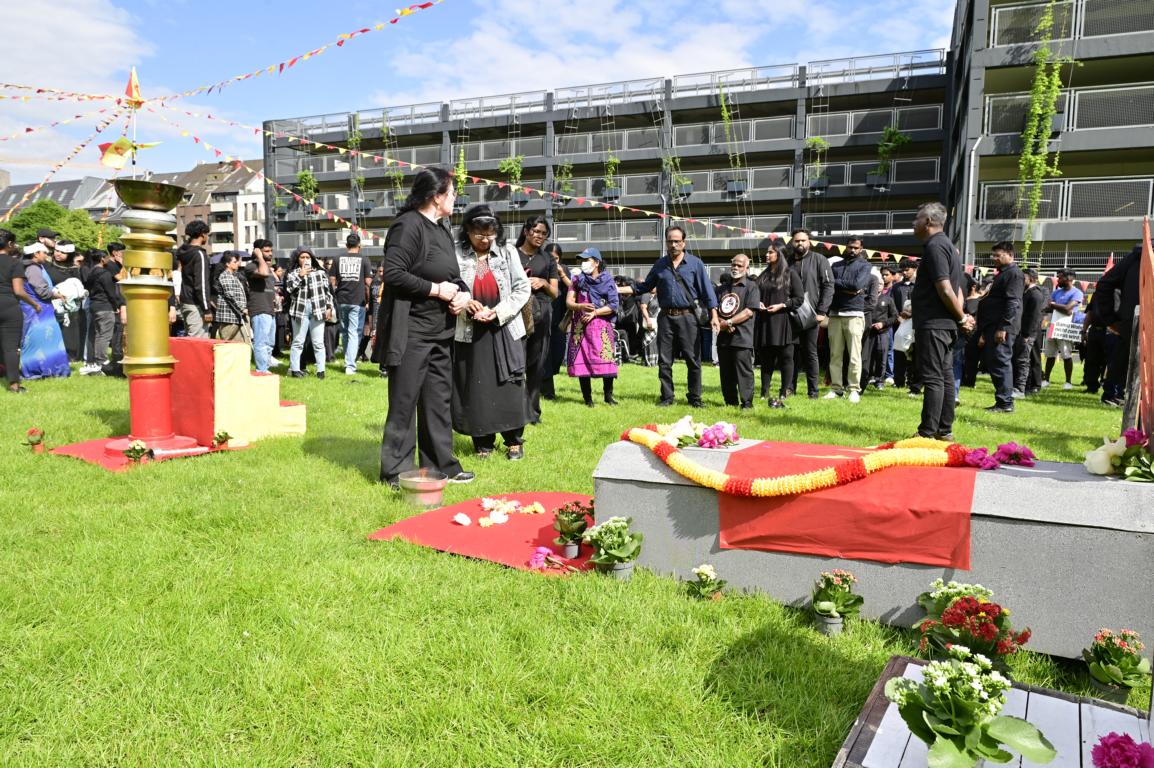 தொடர்ந்து மாவீரர் நினைவுப்படத்திற்கான மலர்மாலையினை 13.07.2008 அன்று மன்னார் பாலமோட்டையில் சிறிலங்கா இராணுவத்துடனான நேரடி மோதலின்போது வீரச்சாவடைந்த போர் உதவிப்படை வீரர் சுப்பிரமணியம் சத்தியபாலன் அவர்களின் மகன் செல்வன். சத்தியபாலன் மயூரன் அவர்களும் பொதுமக்கள் நினைவுப் படத்திற்கான மலர் மாலையினை முள்ளிவாய்க்கால் இன அழிப்பின் நேரடிச் சாட்சியமாக விளங்கிய திருமதி. தீபா இரவிச்சந்திரன் அவர்களும் அணிவித்தனர். இதனைத்தொடர்ந்து வருகை தந்திருந்த மக்கள் அனைவரும் சூடம் ஏற்றி, மலர் தூவி வணங்கினர். அகவணக்கத்தோடு டோட்முண்ட் (Dortmund) தமிழாலய மாணவன் ஸ்ரேபான் அயூடிக் வசந்தராஜ் அவர்களதும், லிவக்கூசன் (Leverkusen) தமிழாலய மாணவி சித்திரா வினோதன் அவர்களுதும் கவி வணக்கமும் மதரக்குரலோன் திரு. கண்ணன் அவர்களது இசை வணக்கமும் இடம்பெற்றது.